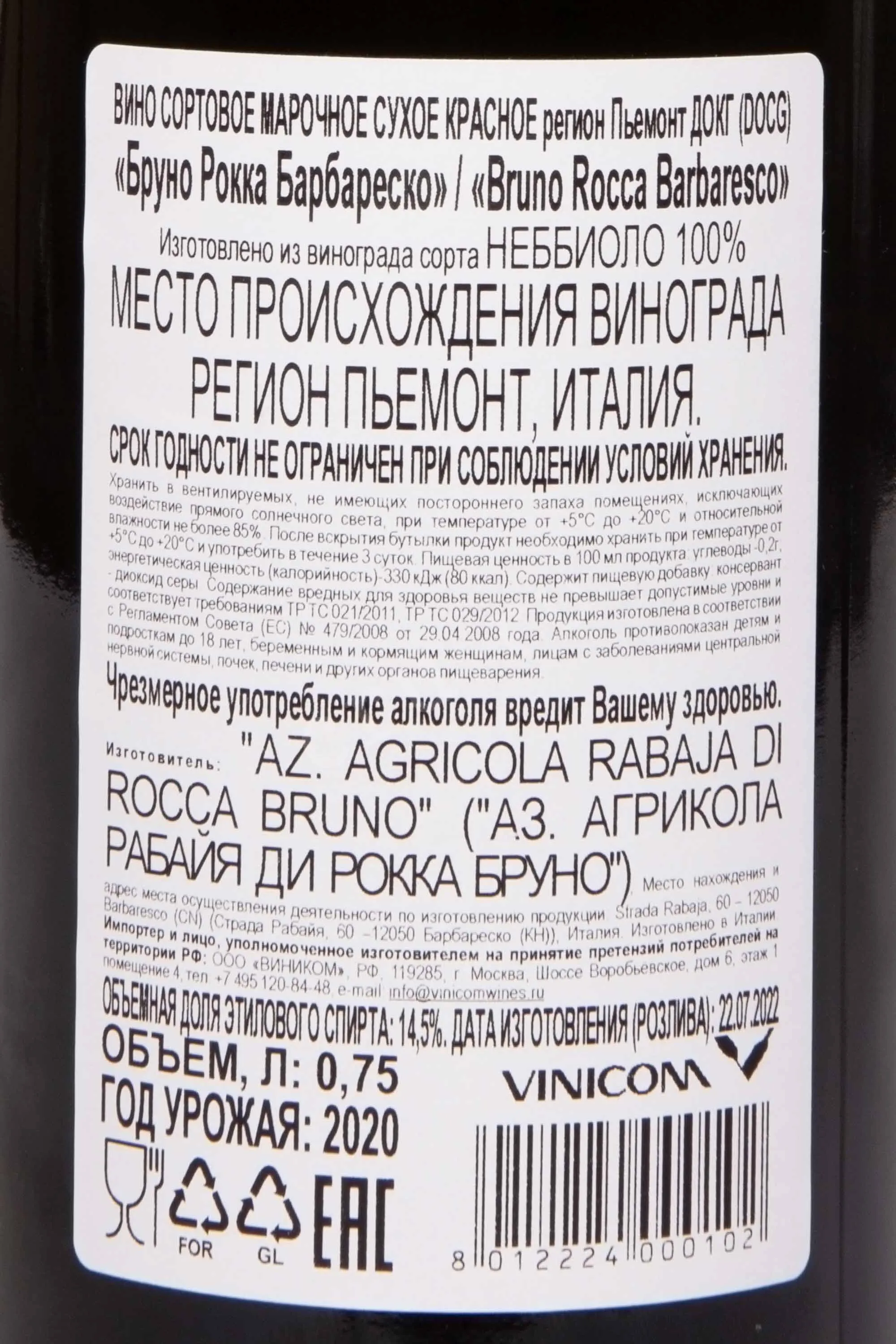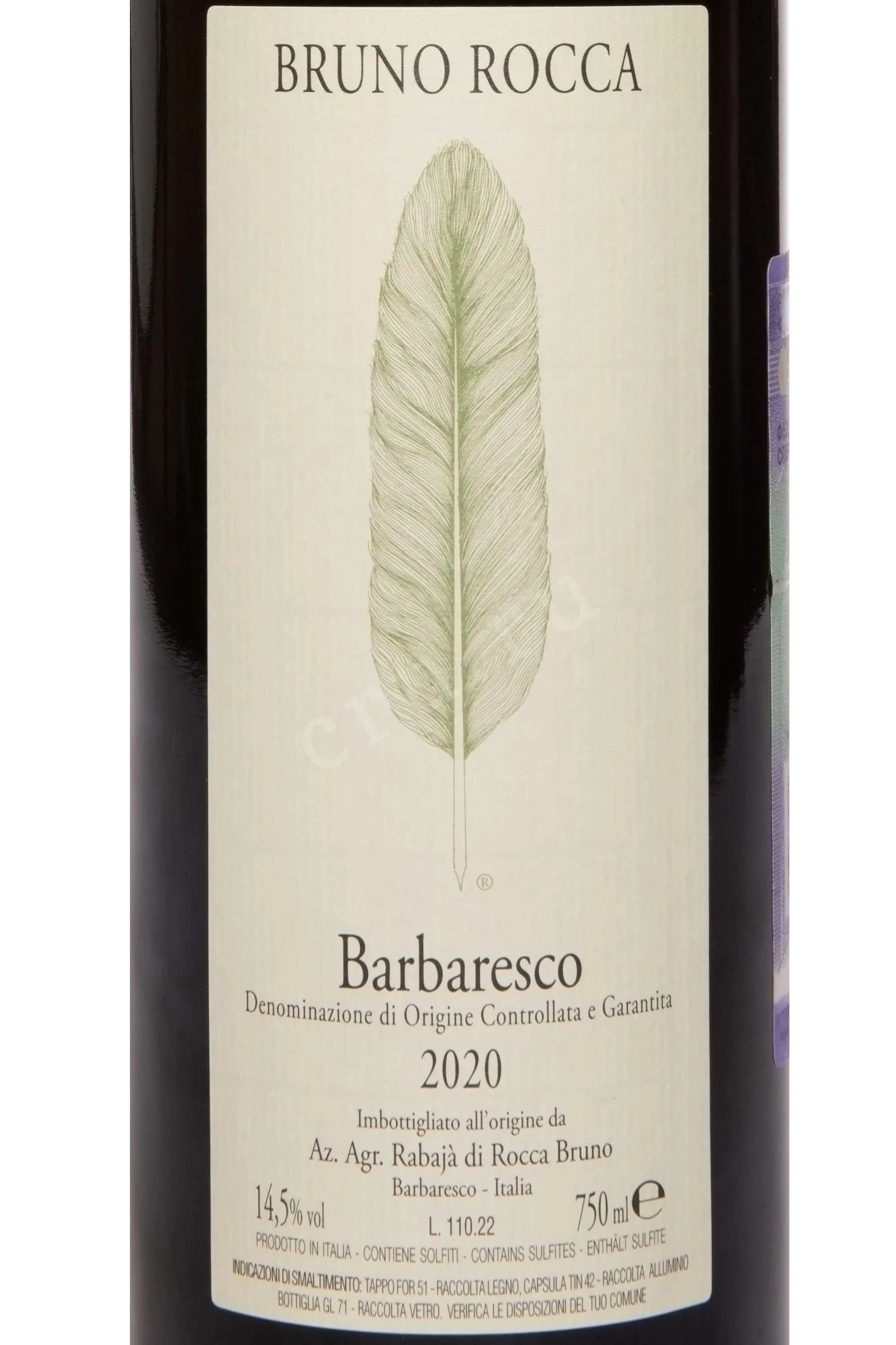 Bruno Rocca Barbaresco DOCG 2020 0.75 л купить - Итальянское вино Бруно Рокка Барбареско ДОКГ цена в магазинег. Москва, ул. Профсоюзная, д. 16/1010:00-22:00 Ежедневно+7 (495) 920-20-02info@cru.ru