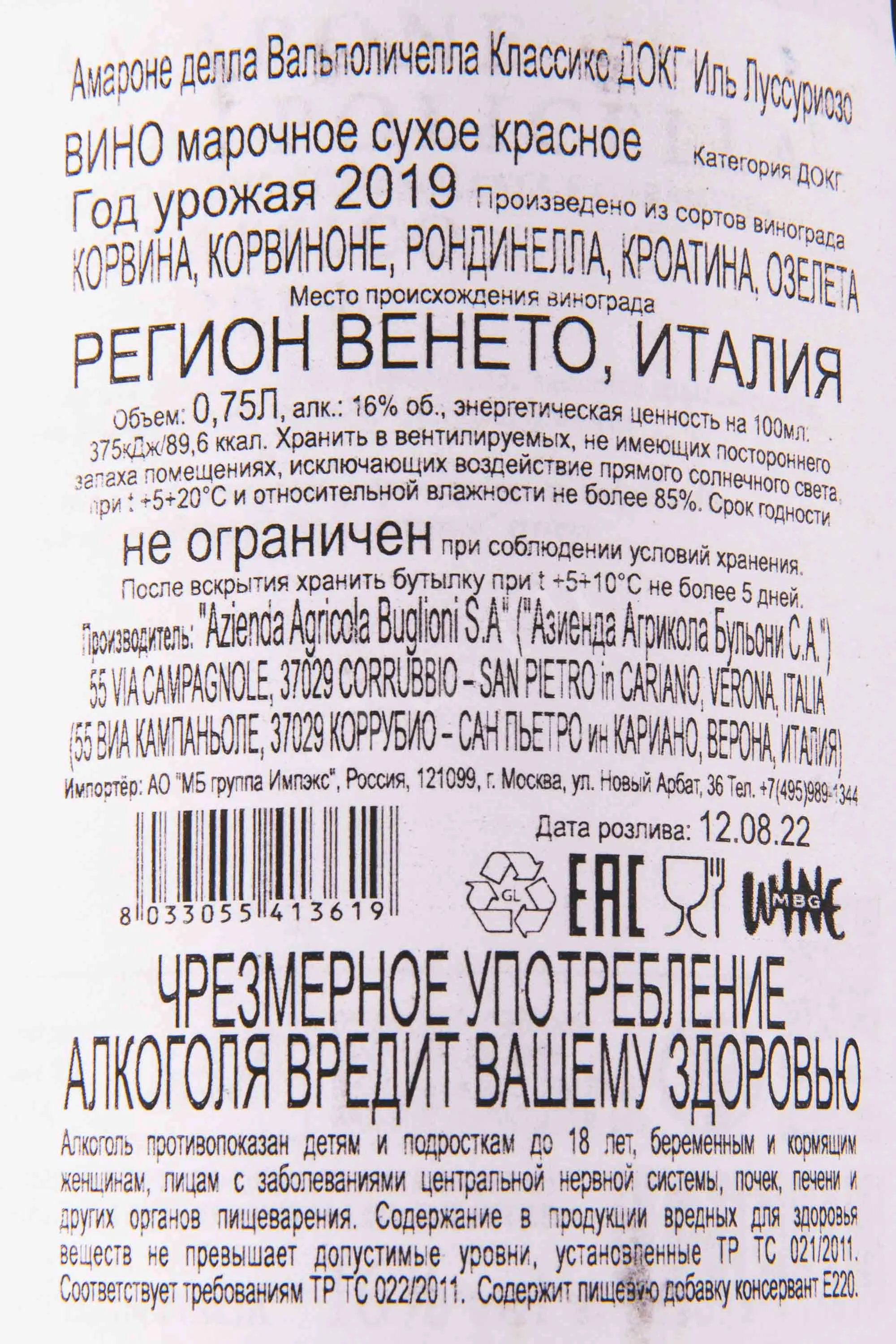 Buglioni Il Lussurioso Amarone della Valpolicella Classico 2019 0.75 л купить - Итальянское вино Бульони Иль Луссуриозо Амароне делла Вальполичелла Классико цена в магазинег. Москва, ул. Профсоюзная, д. 16/1010:00-22:00 Ежедневно+7 (495) 920-20-02info@cru.ru