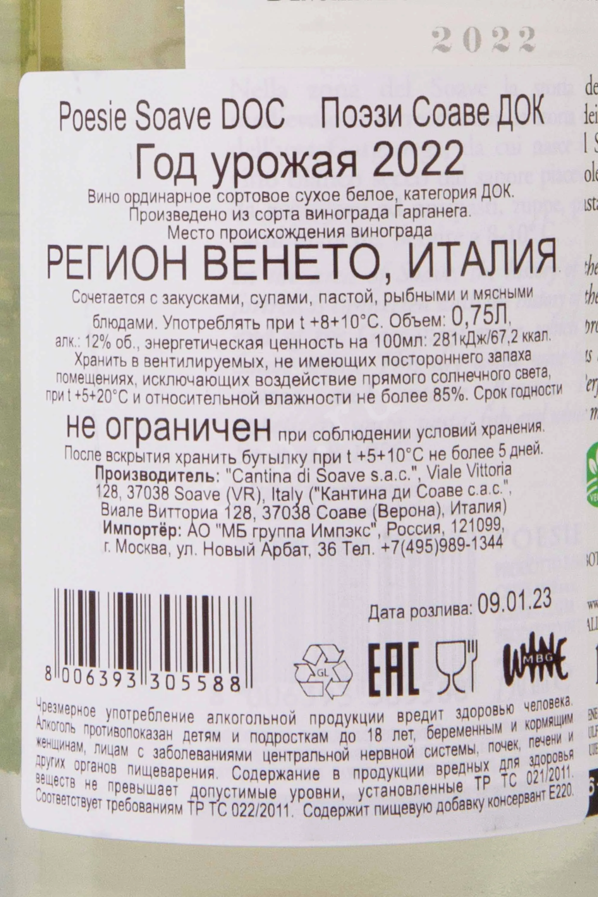 Cantina di Soave Poesie Soave 2022 0.75 л купить - Итальянское вино Поэзи Соаве цена в магазине г. Москва, ул. Профсоюзная, д. 16/10 10:00-22:00 Ежедневно +7 (495) 920-20-02 info@cru.ru