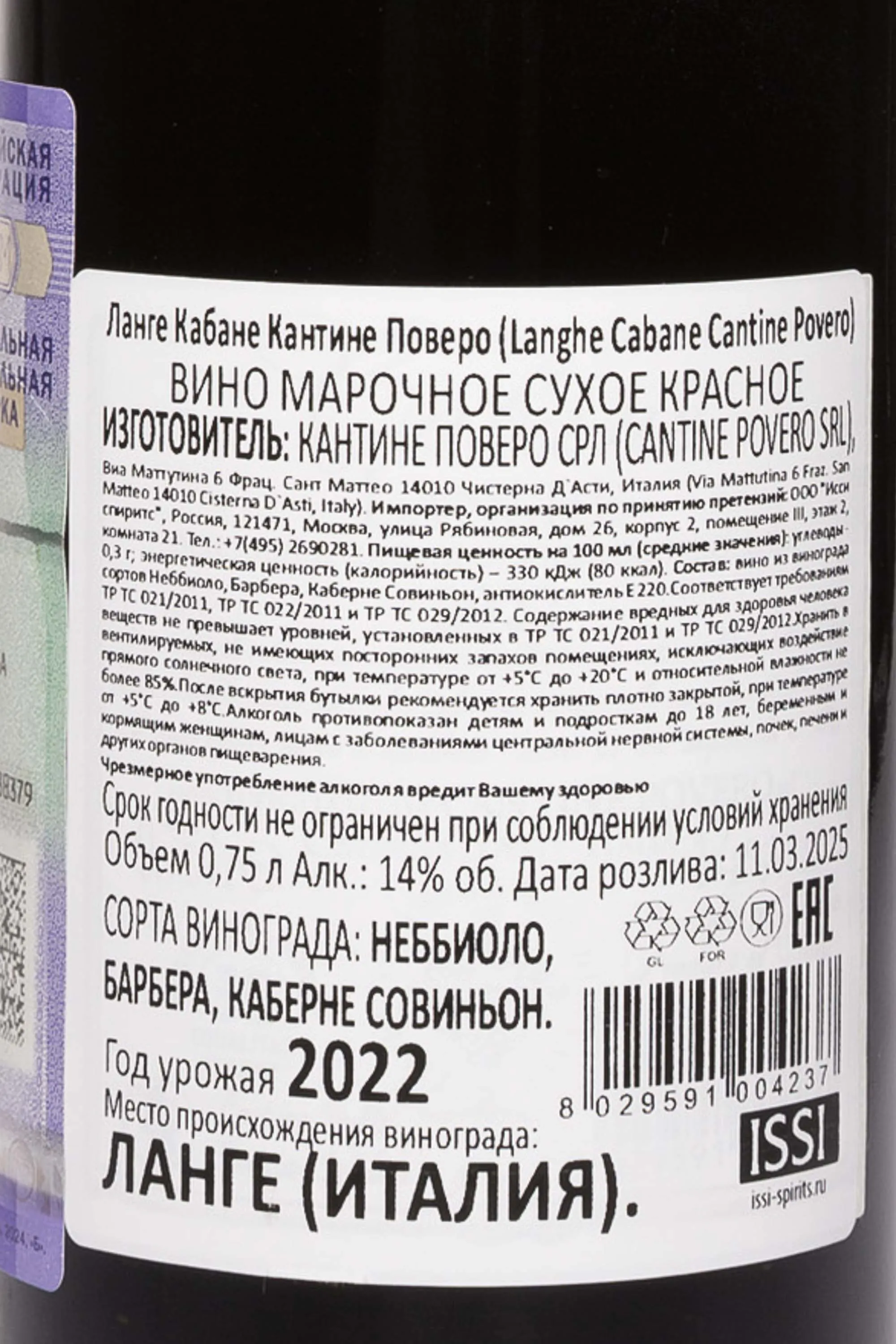 Вино Cantine Povero Cabane Langhe DOC 2022 0.75 л — красное итальянское купажированное спиртное, вобравшее в себя характер региона Ланге. Урожай собирают вручную на холмистых участках с южной экспозицией, где почвы богаты известняком, глиной и песчаником. Эти терруарные особенности придают ягодам баланс кислотности и насыщенность аромата. После мягкого дробления ягоды проходят мацерацию при контролируемой температуре, чтобы сохранить естественные фруктовые ноты и мягкие танины. Ферментация проходит в стальных резервуарах, а затем часть напитка выдерживается в дубовых барриках, что добавляет гармонии, глубины и тонких оттенков пряностей. Винодельня Cantine Povero следует принципам устойчивого земледелия, исключая использование химических удобрений и опираясь на возобновляемые источники энергии.