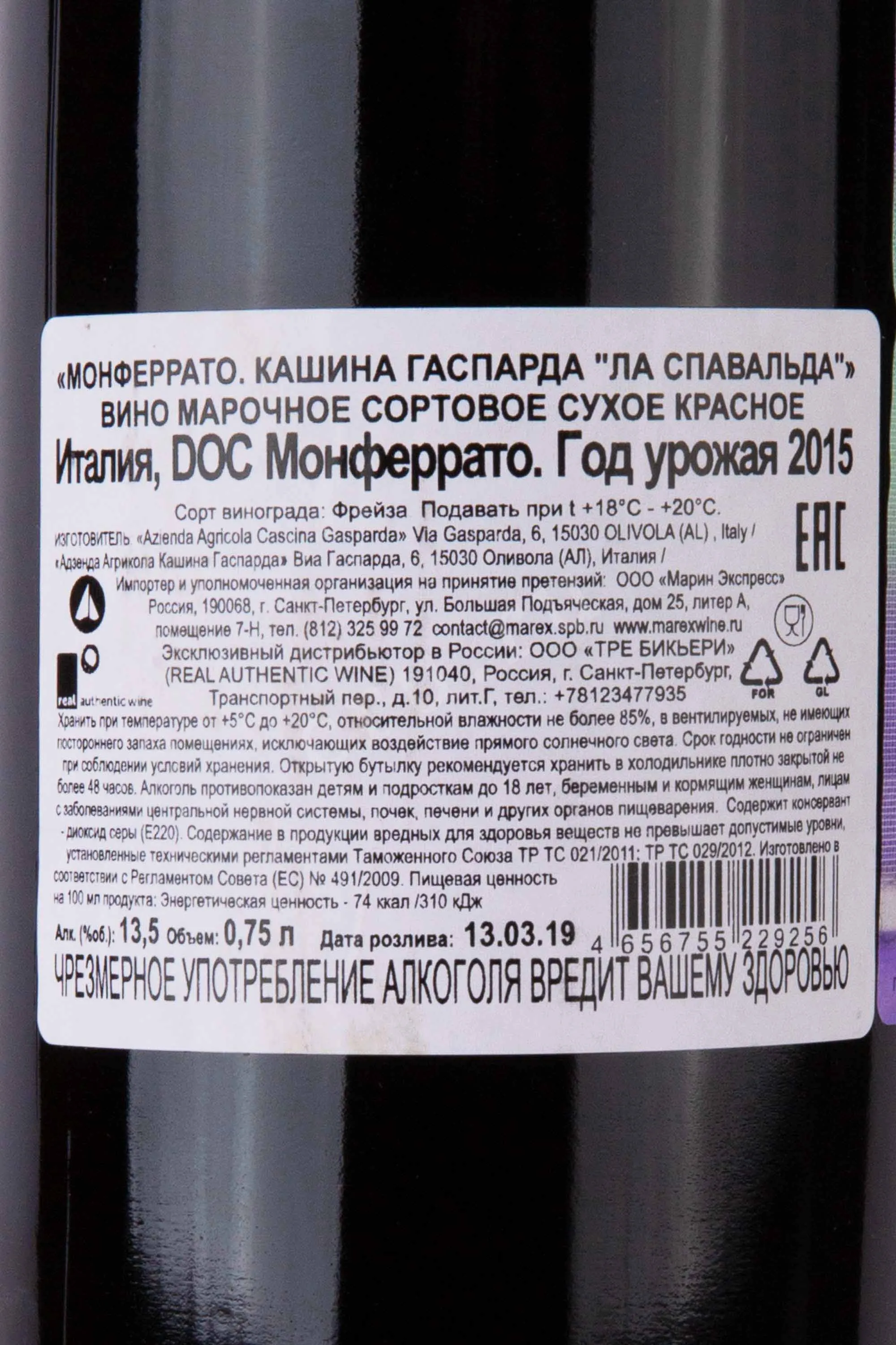 Кашина Гаспарда Ла Спавальда Монферрато 2015 0.75