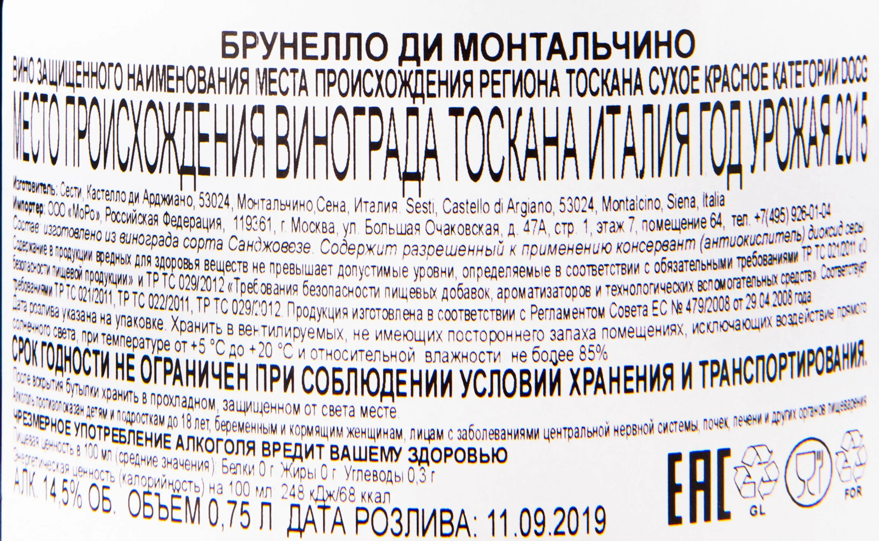 Брунелло ди Монтальчино Сести Кастелло ди Арджиано 2015 0.75