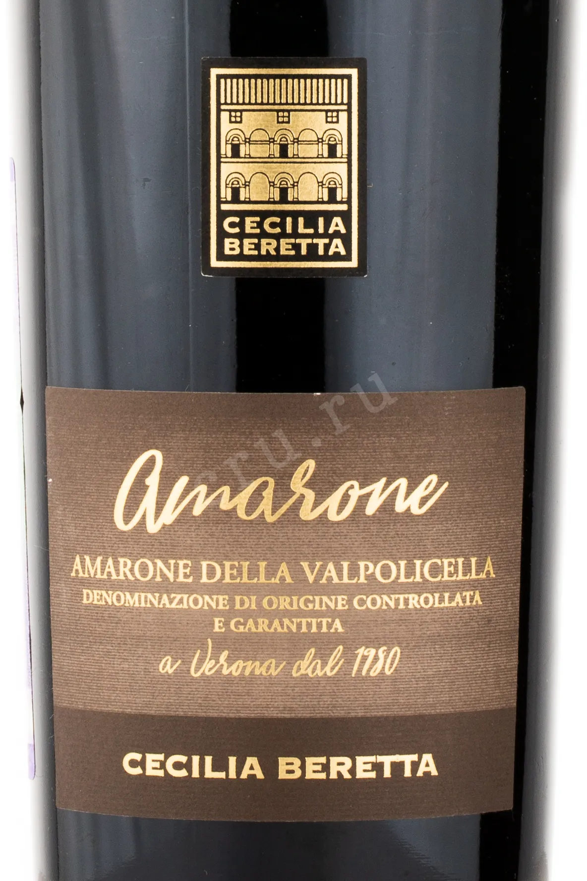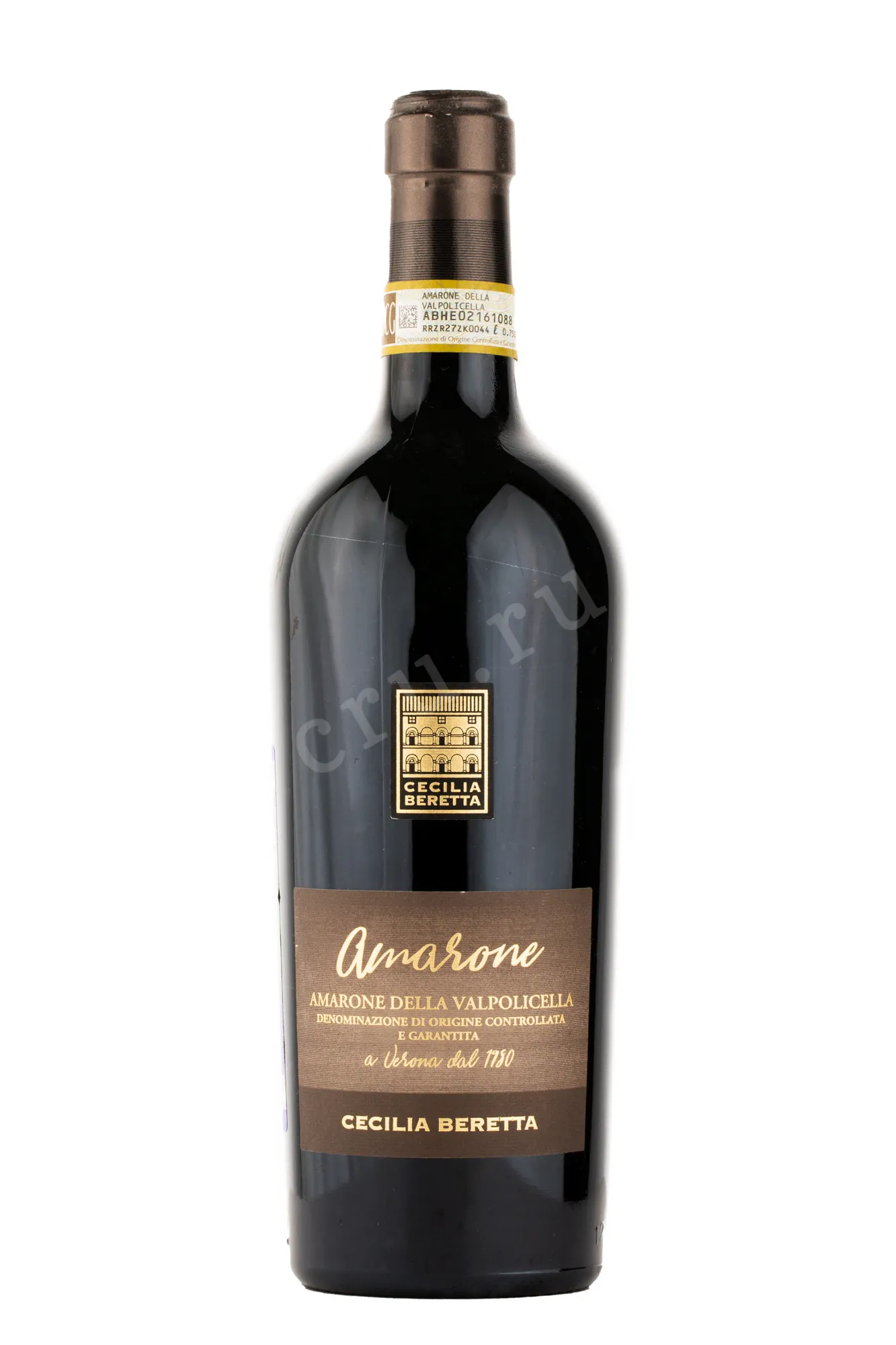 Красное полусухое вино Cecilia Beretta Amarone Della Valpolicella 2015 г. было произведено в ограниченной зоне региона Венето на базе трех вариаций аборигенного винограда, собранного в осенний сезон одного года с аллювиальных почв, богатых отложениями глины и известняка. Сырье подверглось продолжительному высушиванию (сроком 4-5 месяцев) в естественных условиях для увеличения сахаристости, после чего прошло ферментацию длительностью 20-25 суток. Выдержка напитка происходила в дубовых бочонках и заняла полтора года. Еще около полугода 15-градусное вино дозревало в бутылках.