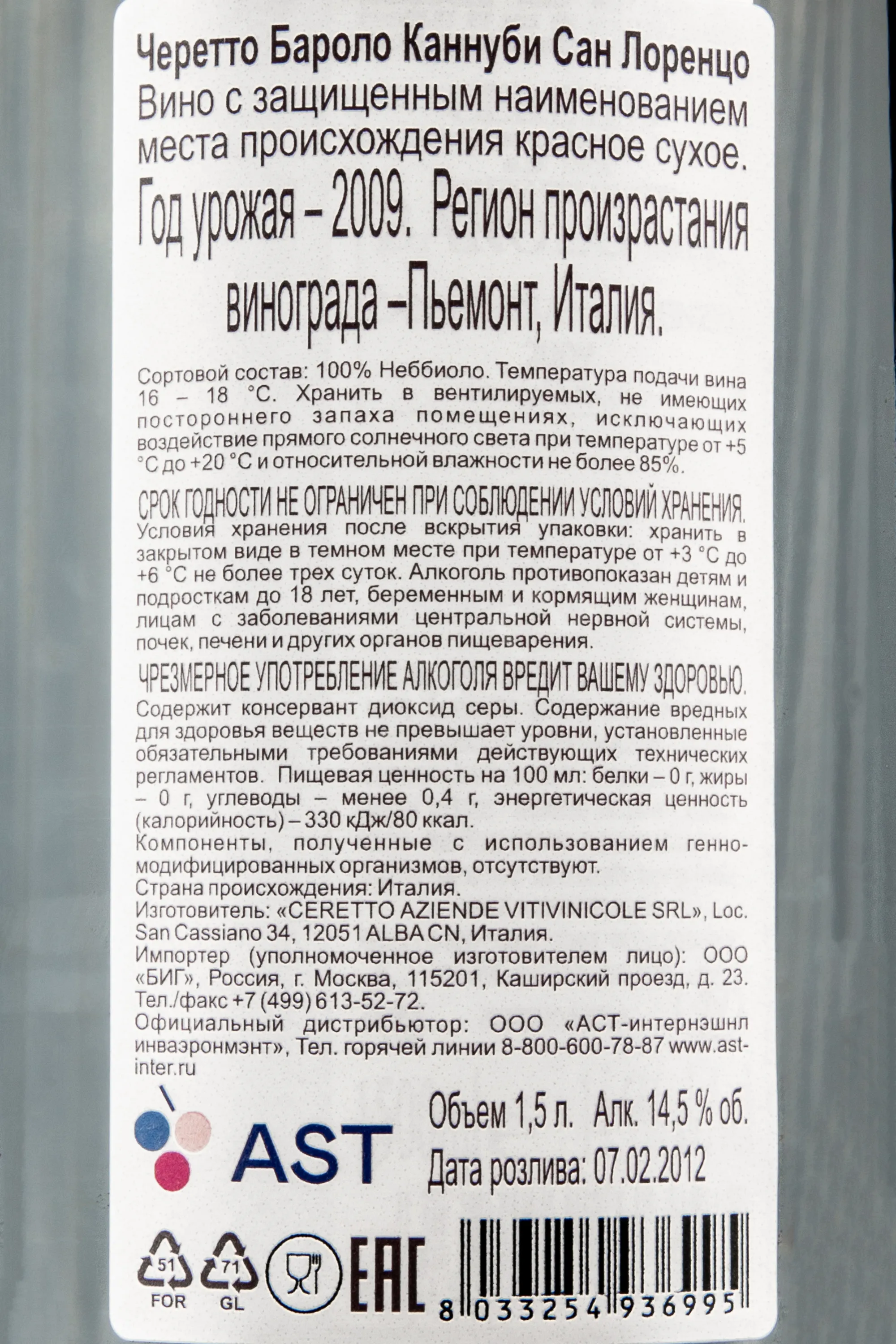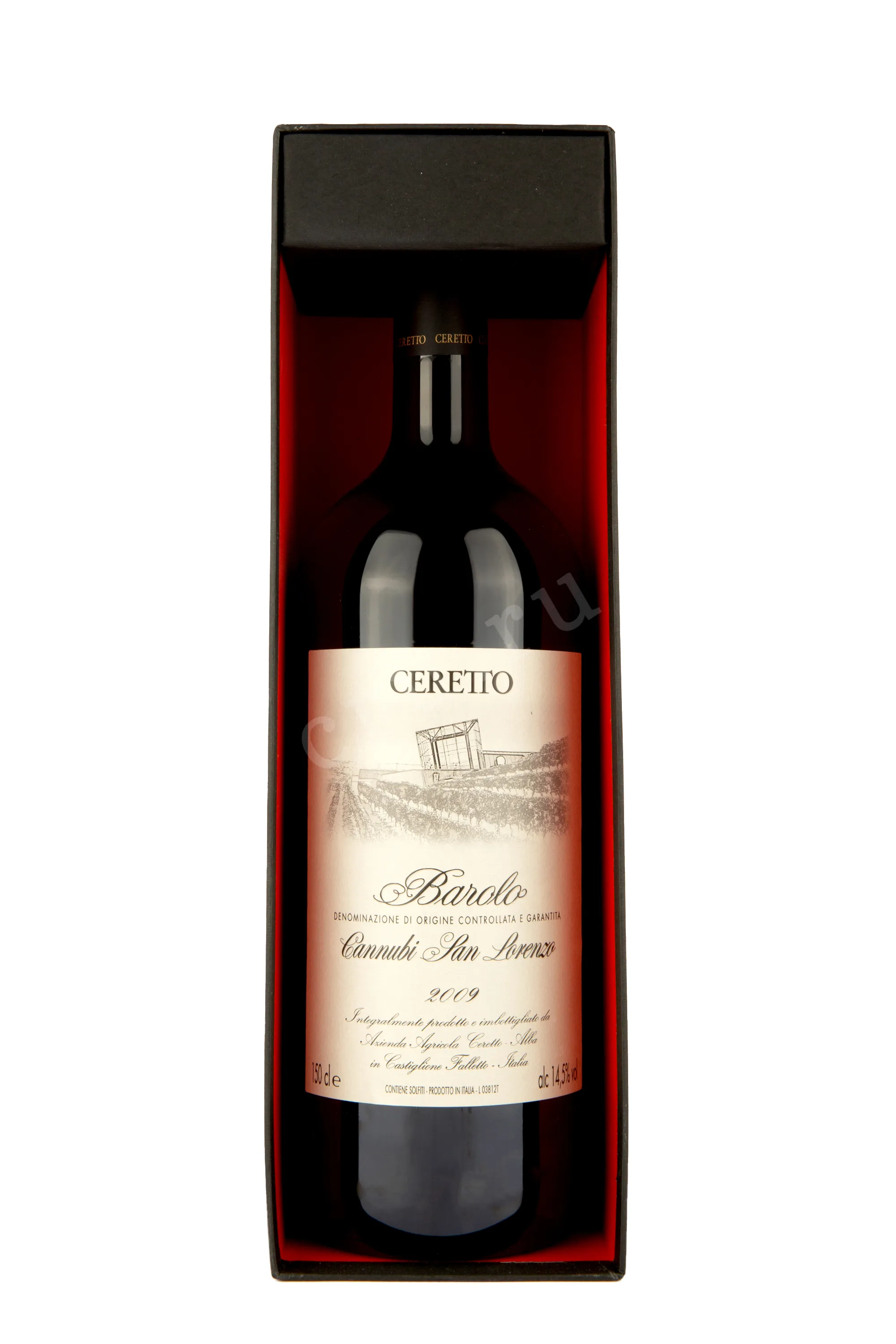 Красное сухое вино Ceretto Barolo Cannubi Can-Lorenzo 2009 г. 1,5 л является идеальным подарочным вариантом и сопровождением крупного праздника, так как поставляется в больших бутылках и комплектуется подарочными деревянными ящичками с фирменной символикой производителя. Виноград для него собрали в течение определенного года на высоте от 290 до 320 м в Пьемонте (Италия). Местность происхождения сырья богата мергелевыми породами с отложениями древнего известняка, а возраст лоз в среднем составляет 80 лет. Урожай ручного метода сбора подвергся недельной ферментации в стальных емкостях при участии натуральных дрожжей, а также выдержке сроком от двух лет до 30 месяцев в объемных дубовых бочонках. Крепость вина равна 14,5 градуса.