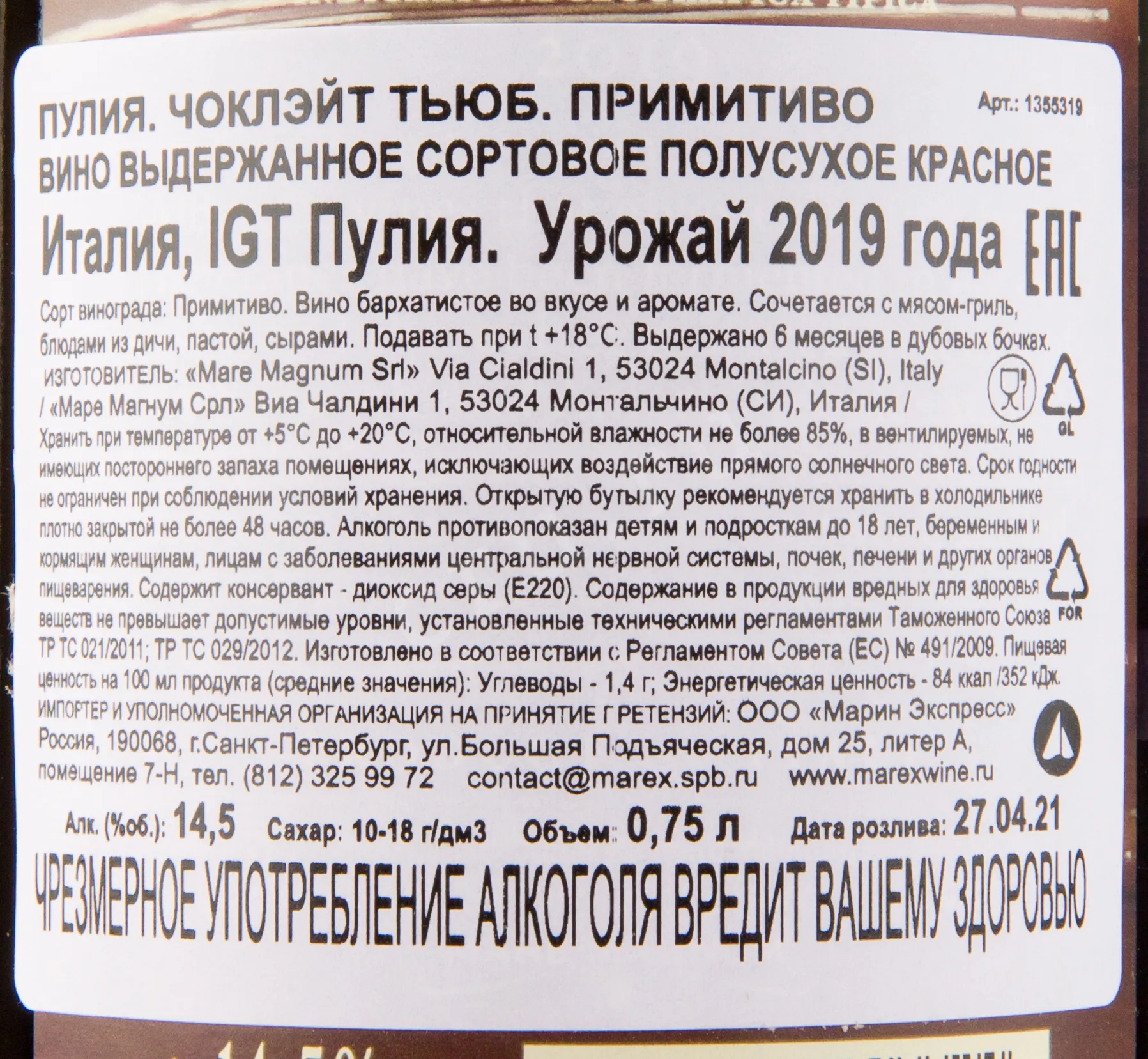 Наименование вина: Primitivo di Manduria