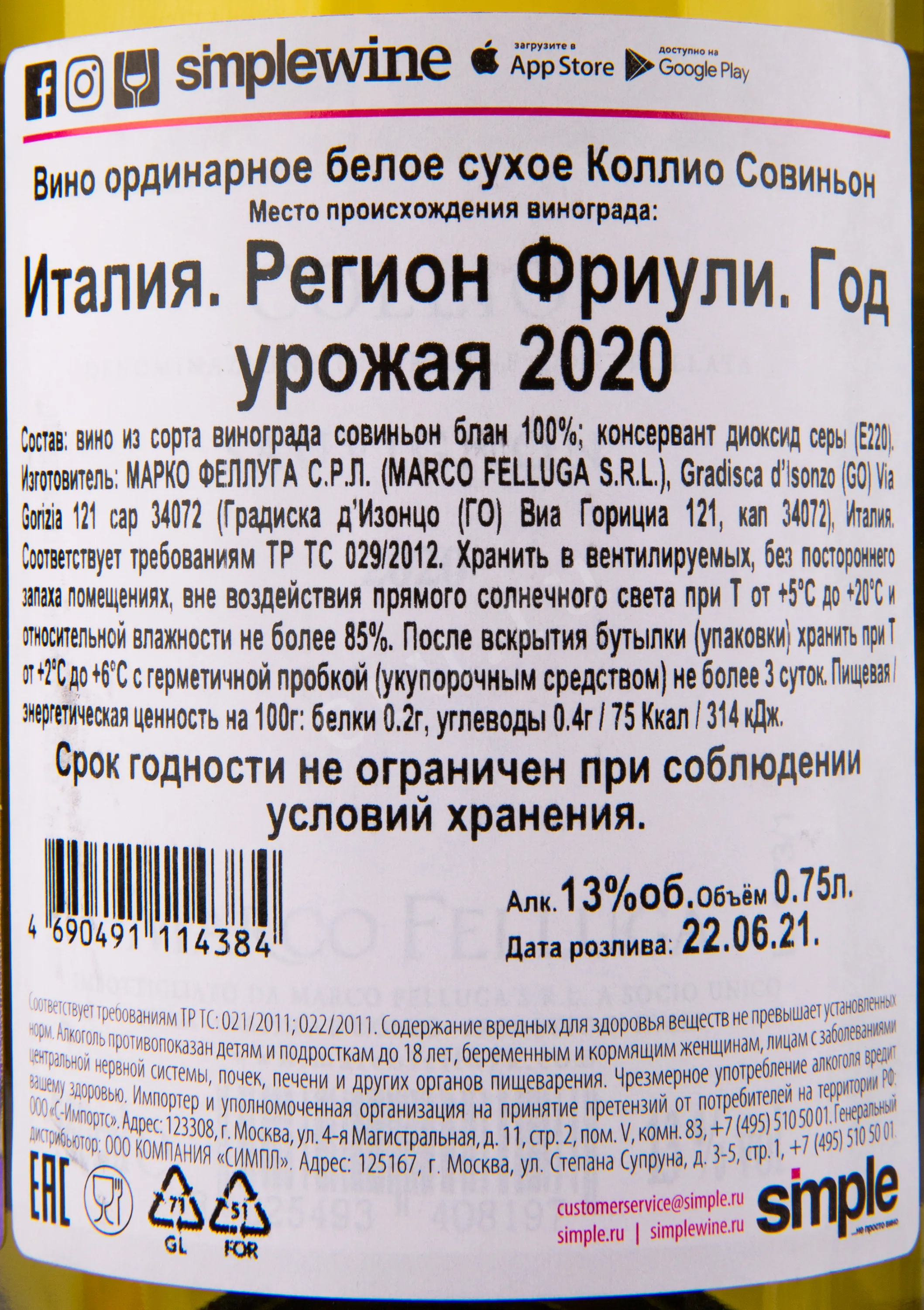 Вино Collio Sauvignon Blanc Marco Felluga 0.75 л - белый сухой итальянский винтаж из региона Фриули-Венеция-Джулия. Сбор урожая осуществляется вручную в первых числах сентября. Над ягодами проводят холодную мацерацию на мезге и мягкое прессование. Ферментация проходит в ёмкостях из нержавеющей стали при контролируемой температуре. Выдерживают вино на осадке в течение нескольких месяцев.