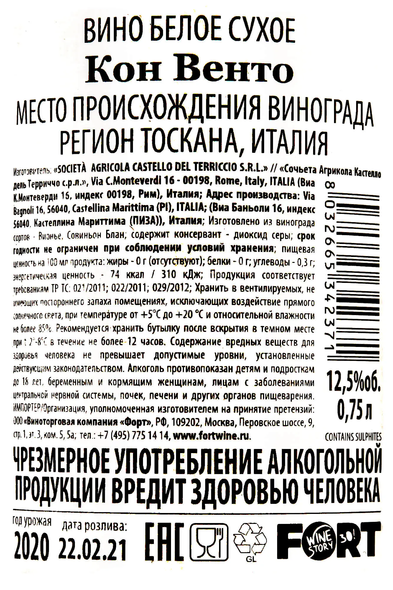 Вино Con Vento Castello del Terricio 2020 0.75 л