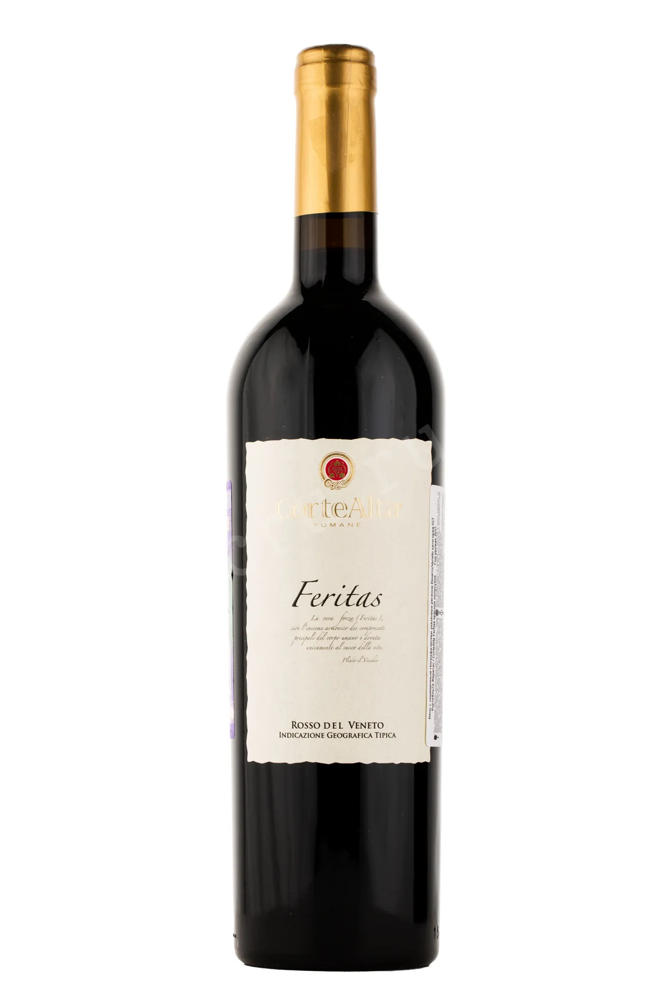 Красное сухое вино Corte Alta Feritas 2017 г. 0,75 л со спиртуозностью 14,5% представляет собой купаж распространенных итальянских и международных сортов винограда, выращенных на итальянских угодьях и собранных в ограниченный урожайный год. Сырье с лоз юго-восточной экспозиции, которые находятся на высоте 500 м над уровнем моря, собрали ручным способом и подвергли алкогольной ферментации в металлических чанах при поддерживаемой температуре до 26 °C. Перед бутилированием вино выдерживалось в новых французских барриках из дуба в течение одного года, еще полгода оно провело в стекле и только потом отправилось на реализацию. Напиток предлагается в нефильтрованном виде.