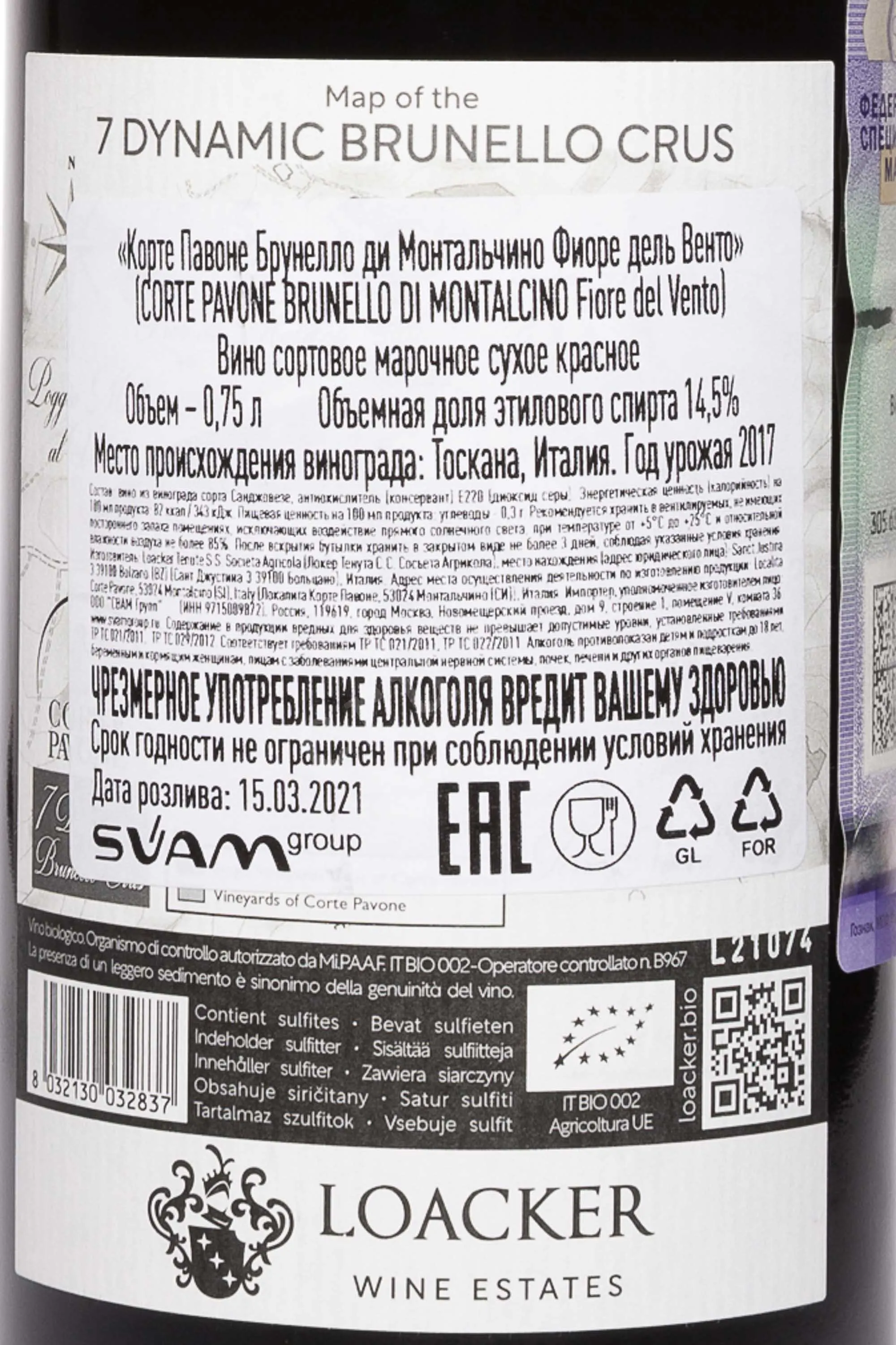 Corte Pavone Brunello di Montalcino Fiore del Vento 2017 0.75 л купить - Итальянское вино Корте Павоне Брунелло ди Монтальчино Фиоре дель Венто цена в магазине г. Москва, ул. Профсоюзная, д. 16/10 10:00-22:00 Ежедневно +7 (495) 920-20-02 info@cru.ru