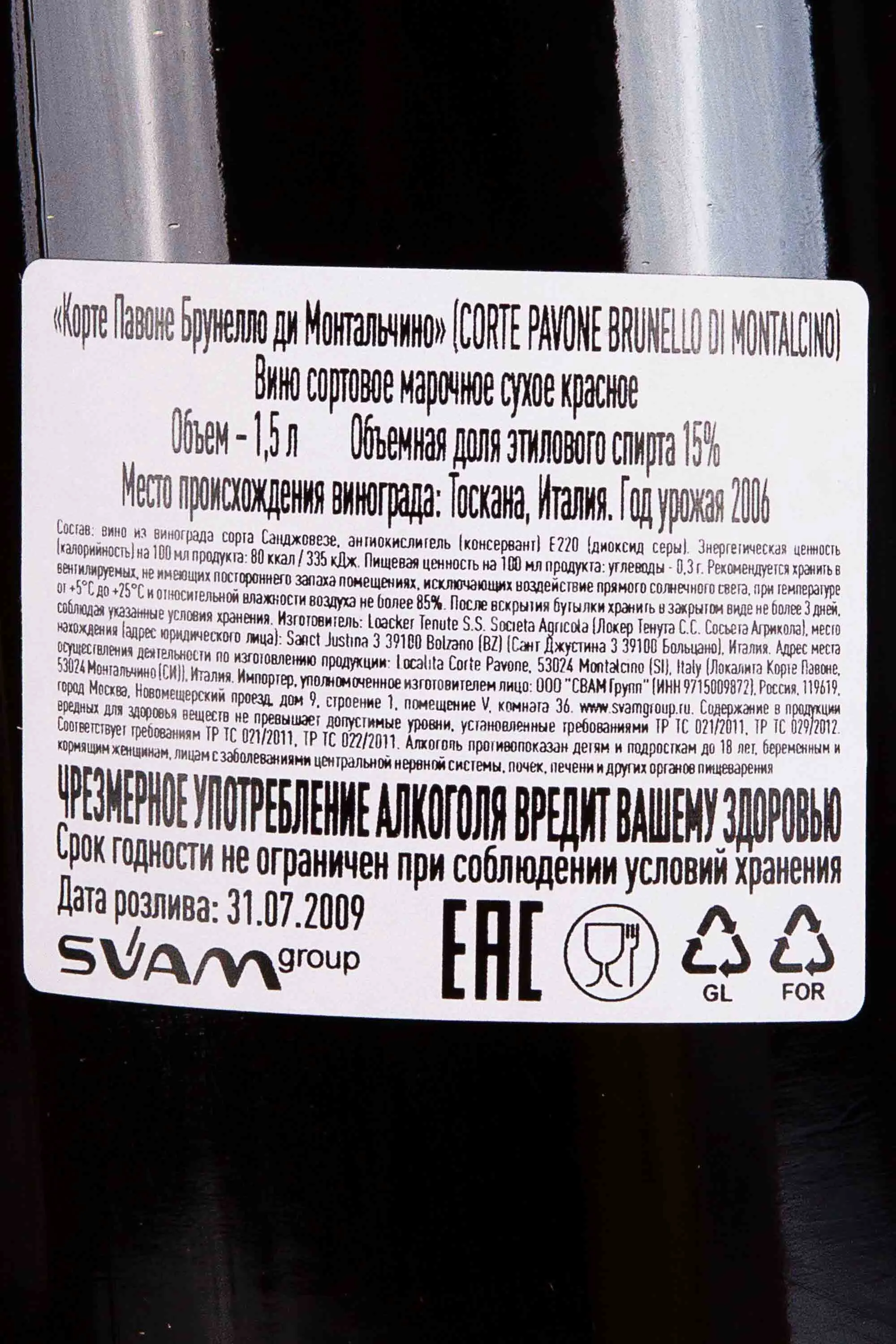 Корте Павоне Брунелло ди Монтальчино в деревянной упаковке 2006 1.5