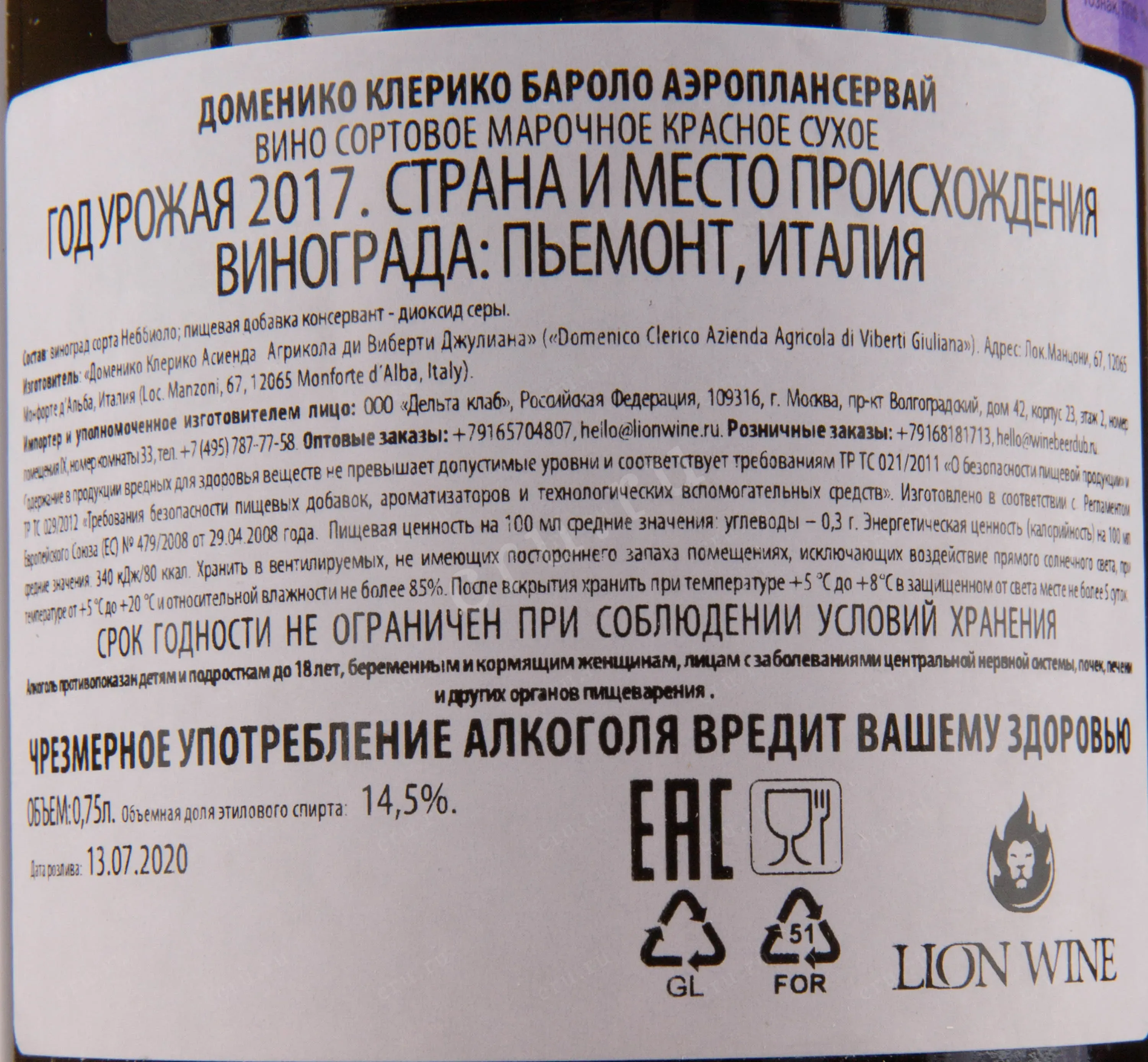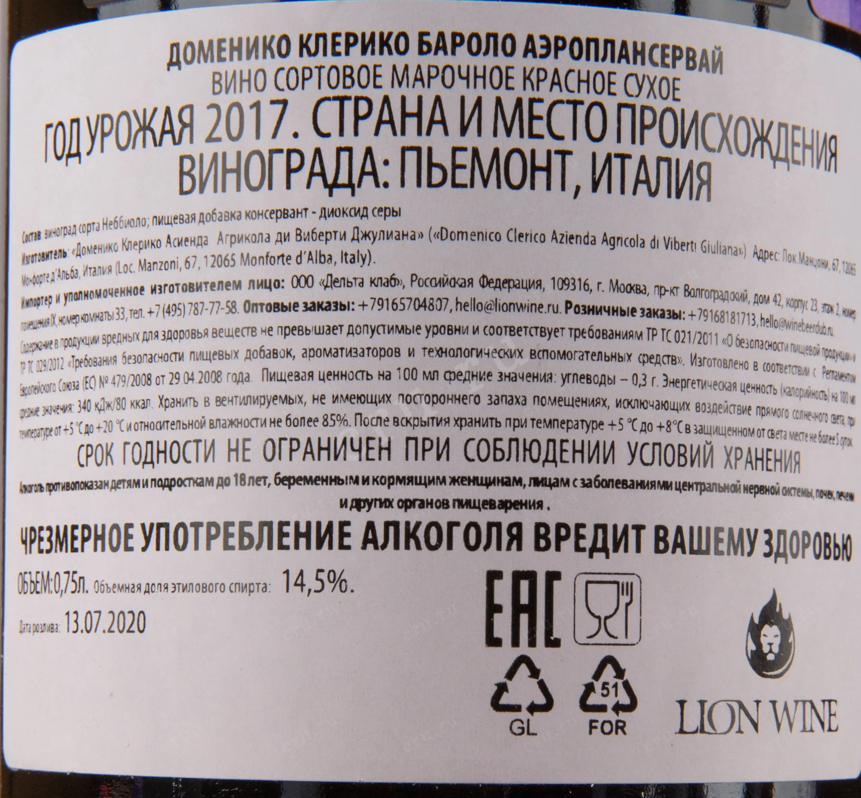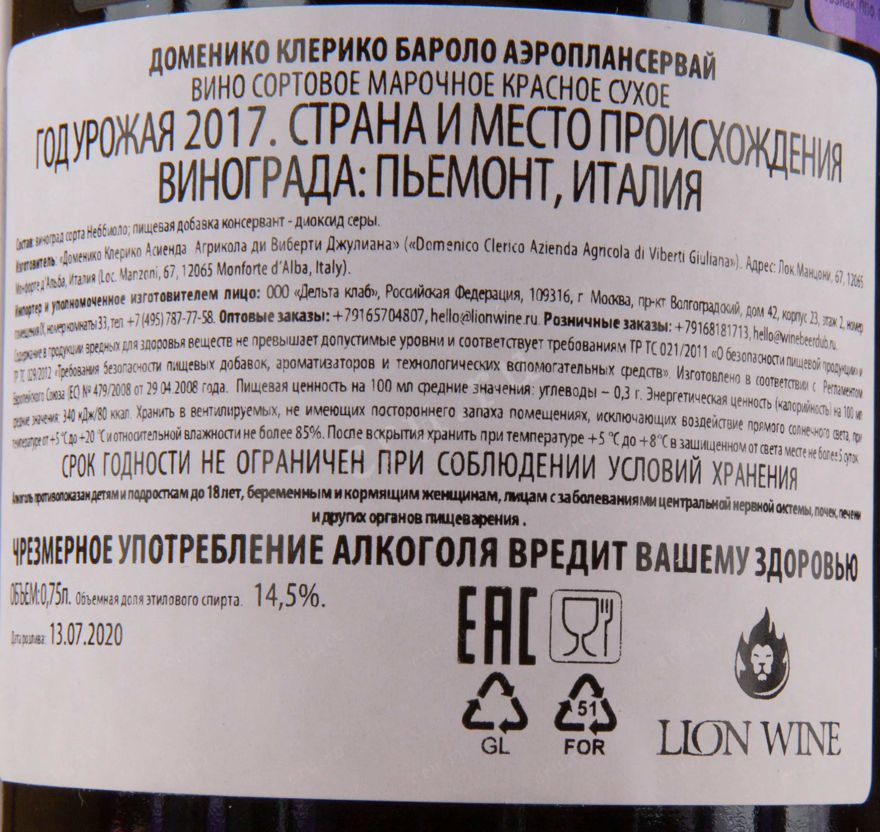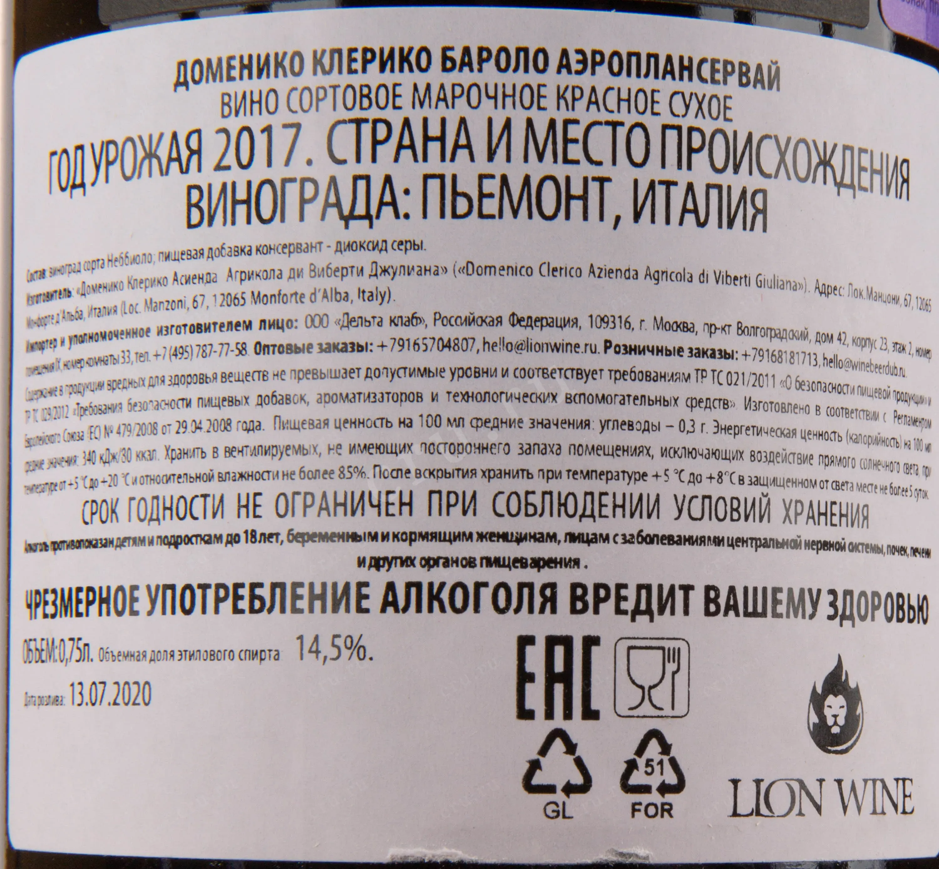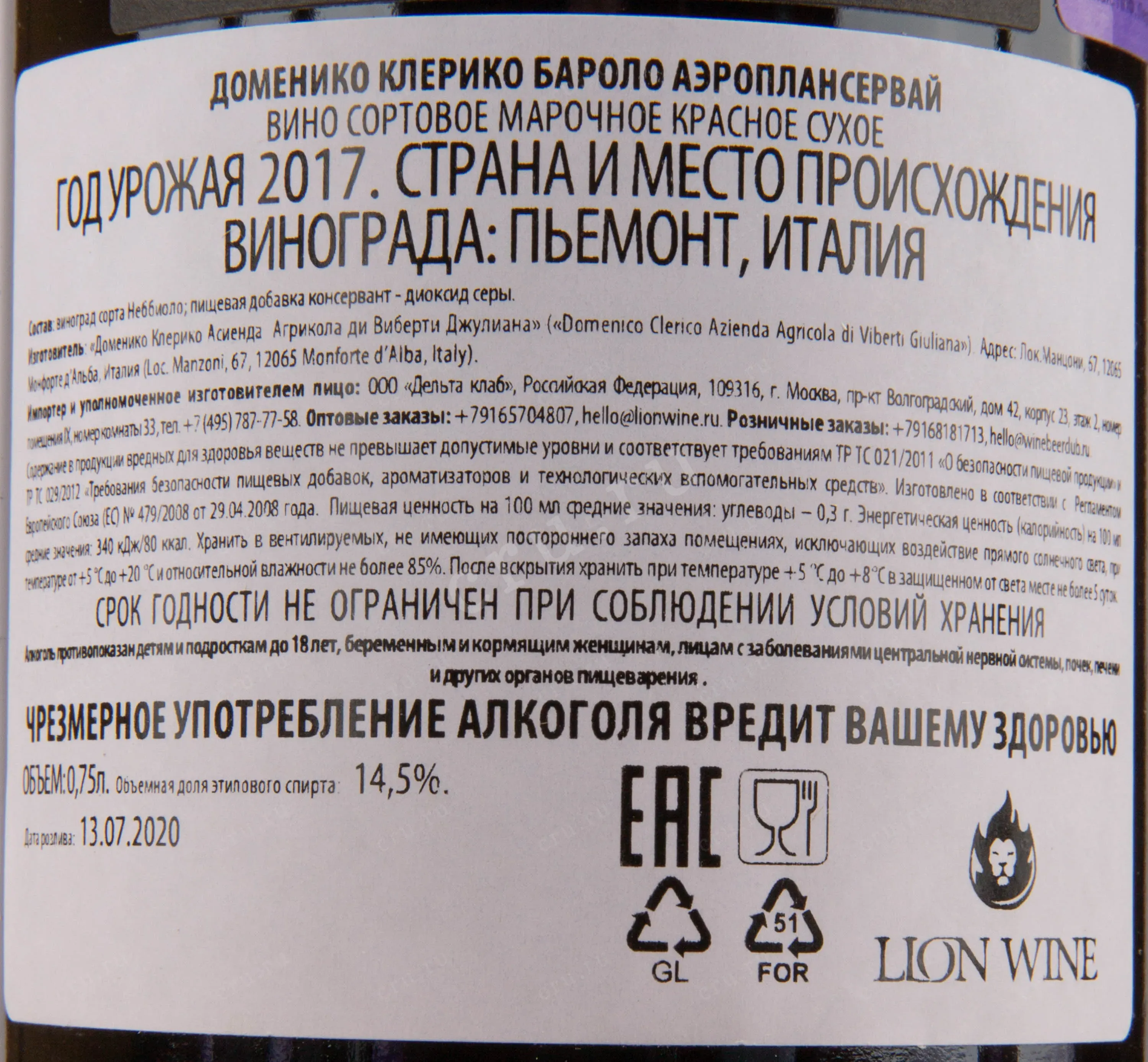 Наименование вина: Barolo