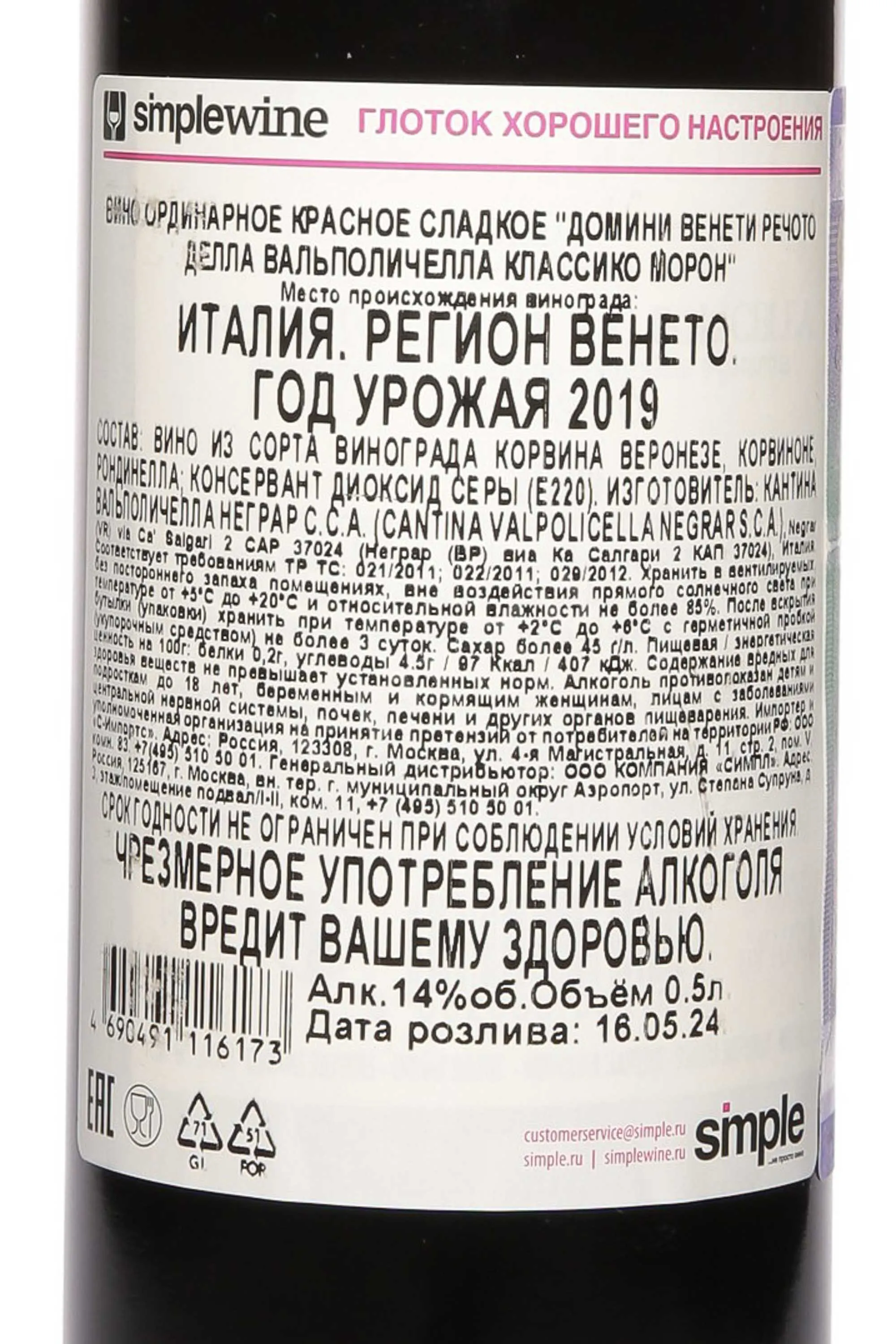 Вино Domini Veneti Recioto della Valpolicella Classico Vigneti di Moron 2019 0.5 л создано в самом сердце региона Венето, где традиция производства десертных напитков бережно сохраняется поколениями. Для его изготовления ягоды после сбора высушивали в течение нескольких месяцев на специальных решетках, чтобы сконцентрировать сахар и ароматические вещества. Такой метод «аппассименто» позволял достичь насыщенной структуры и глубины вкуса. Терруар виноградников Морона отличался известняковыми и вулканическими почвами, которые придавали ягодам особую минеральность и баланс кислотности. Микроклимат холмов, где чередовались солнечные дни и прохладные ночи, обеспечивал равномерное созревание, что отразилось на гармоничности и богатстве готового напитка.