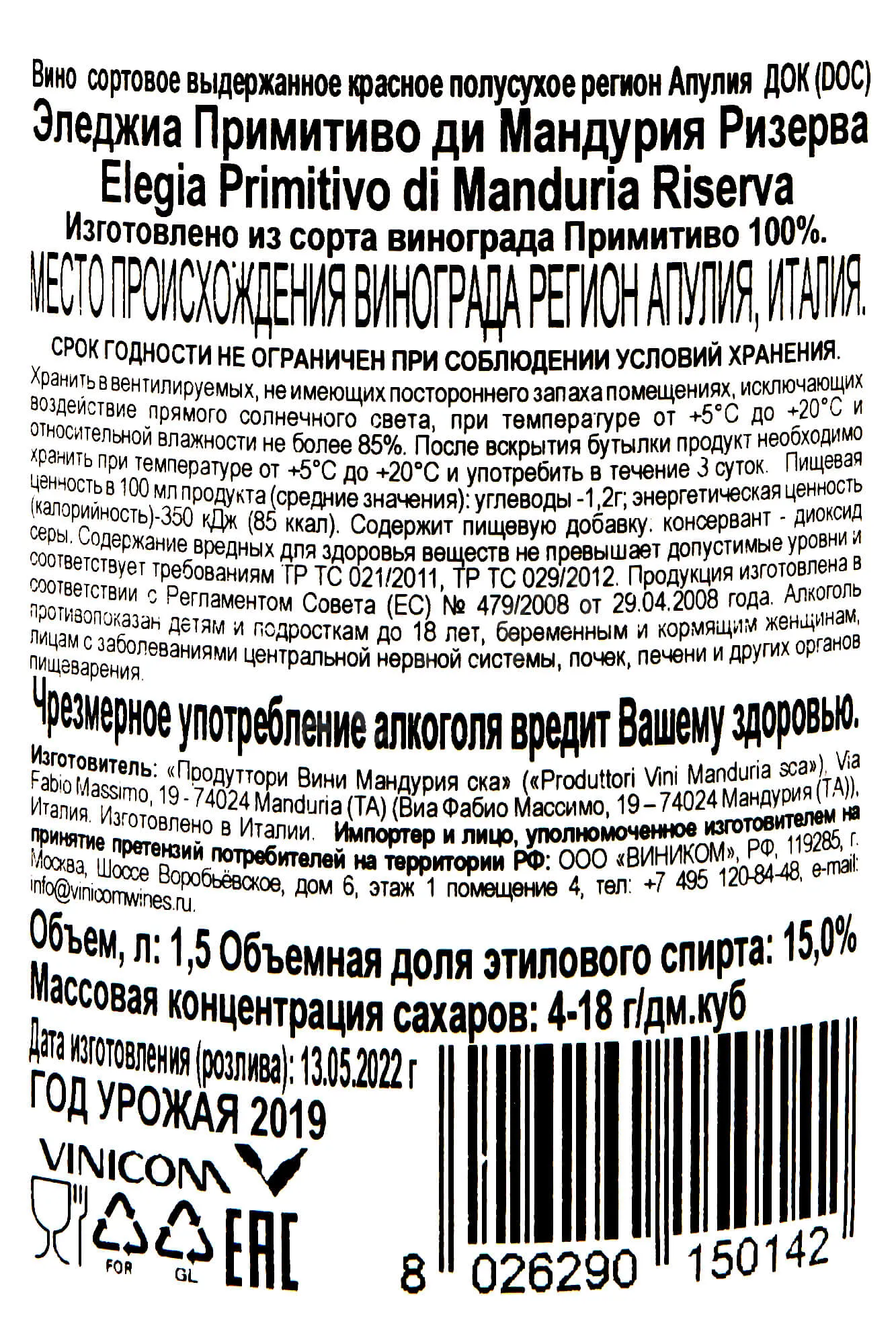 Elegia Riserva Primitivo di Manduria 2017 1.5 л купить - Итальянское вино Эледжиа Ризерва Примитиво ди Мандурия цена в магазинег. Москва, ул. Профсоюзная, д. 16/1010:00-22:00 Ежедневно+7 (495) 920-20-02info@cru.ru