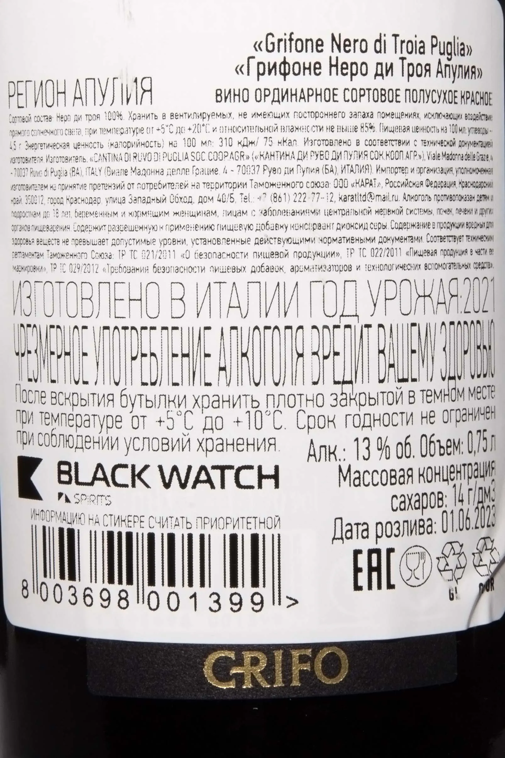 Grifone Nero di Troia 0.75 л купить - Итальянское вино Грифоне Неро ди Троя цена в магазине г. Москва, ул. Профсоюзная, д. 16/10 10:00-22:00 Ежедневно +7 (495) 920-20-02 info@cru.ru