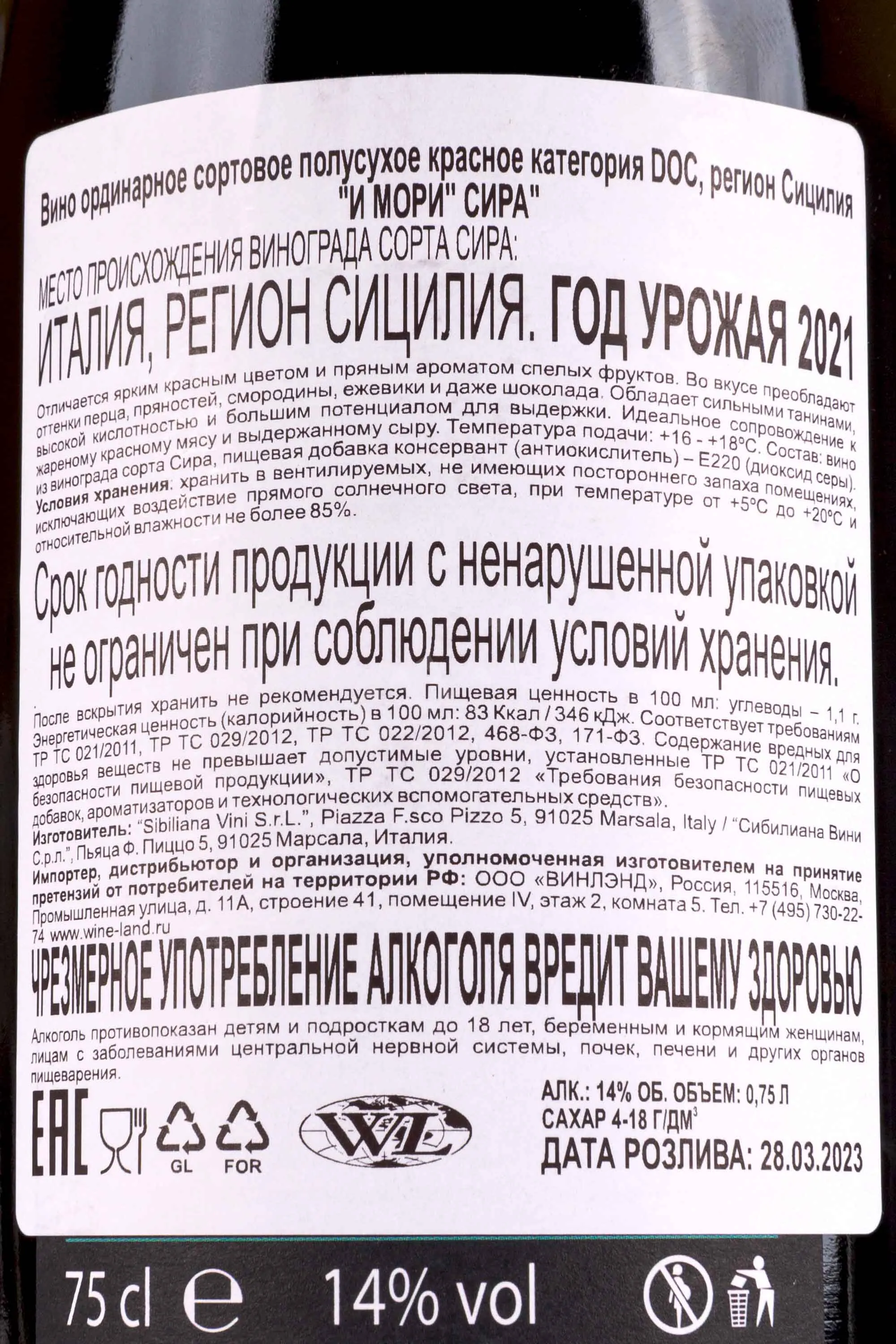 Изготовитель: Сибилиана Вини C.р.л.