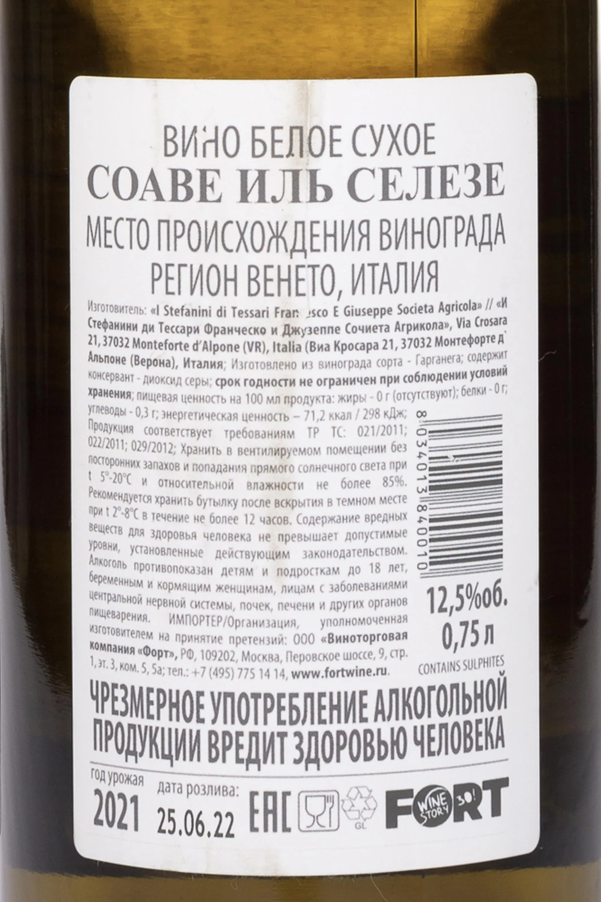Белое сухое вино I Stefanini Il Selese Soave DOC 2021 год 0,75 л содержит ягоды аборигенного сорта, собранные вручную с виноградников, расположенных на вулканических и известняковых почвах в регионе Соаве, Италия. В процессе производства сырье аккуратно прессовали, после чего сусло подвергали ферментации в резервуарах из нержавеющей стали при контролируемых низких температурах. Благодаря этой технологии удалось сохранить свежесть и выразительность сортовых особенностей. После завершения брожения напиток выдерживали непродолжительное время на осадке, что позволило достичь мягкости и округлости вкуса.