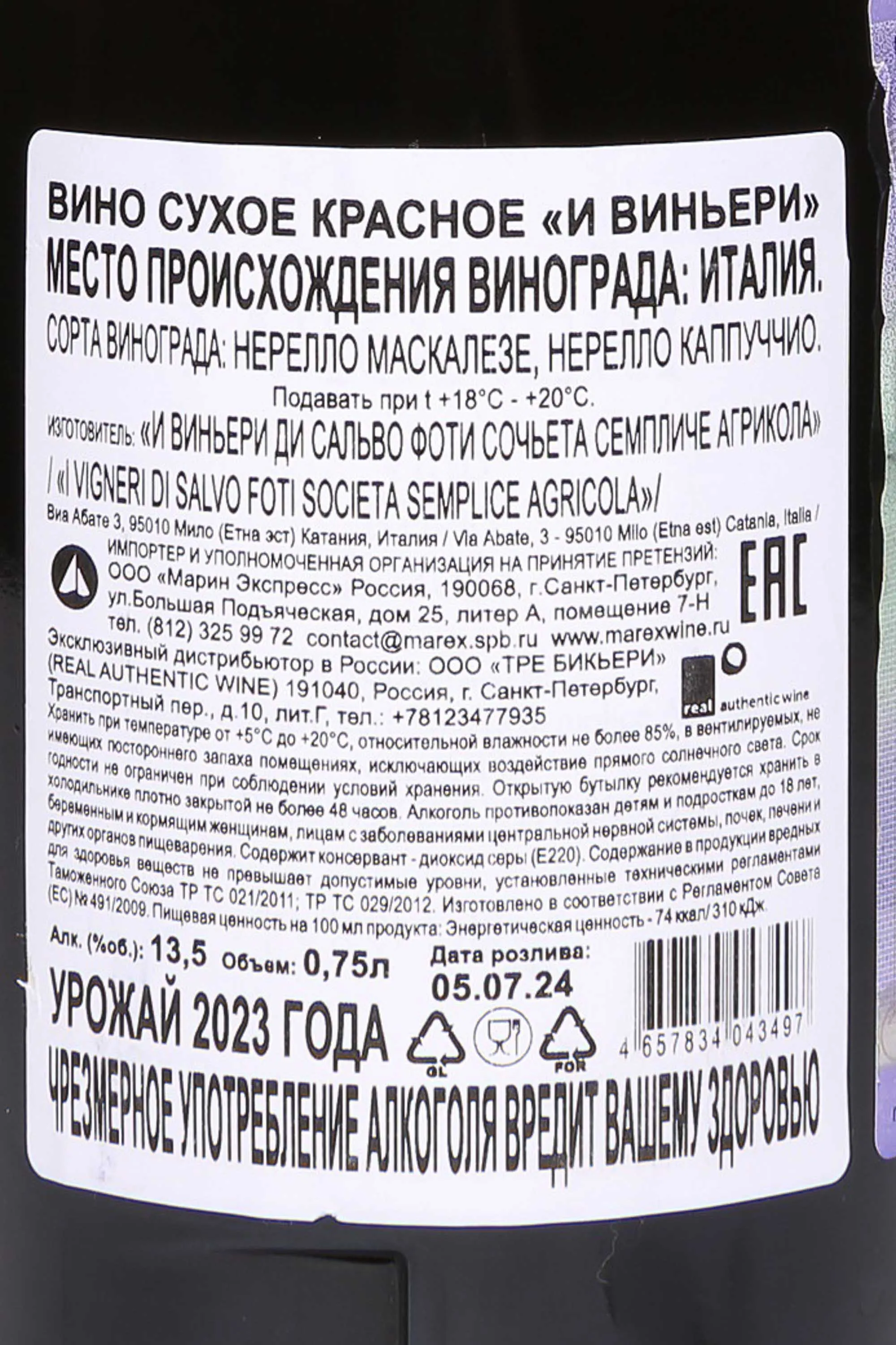 Красное сухое вино I Vigneri Red Dry 2023 г. 0,75 л создано на северных склонах Этны, где виноградники расположены на террасах из черного вулканического камня. Высота посадок достигает 700–900 метров, а почвы состоят из лавы и пепла, обогащая созревающие ягоды микроэлементами и придавая будущему напитку минеральный характер. В том сезоне весна была теплой, с умеренными дождями, что привело к формированию плотных гроздей. Лето оказалось солнечным, но с прохладными ночами, что способствовало медленному и равномерному созреванию. Урожай собирали вручную в начале октября, тщательно отбирая спелые грозди. Винификация проходила в стальных емкостях с контролем температуры, чтобы сохранить свежесть и ароматику, а выдержка в дубовых бочках смягчила танинную структуру и добавило глубину вкусу.