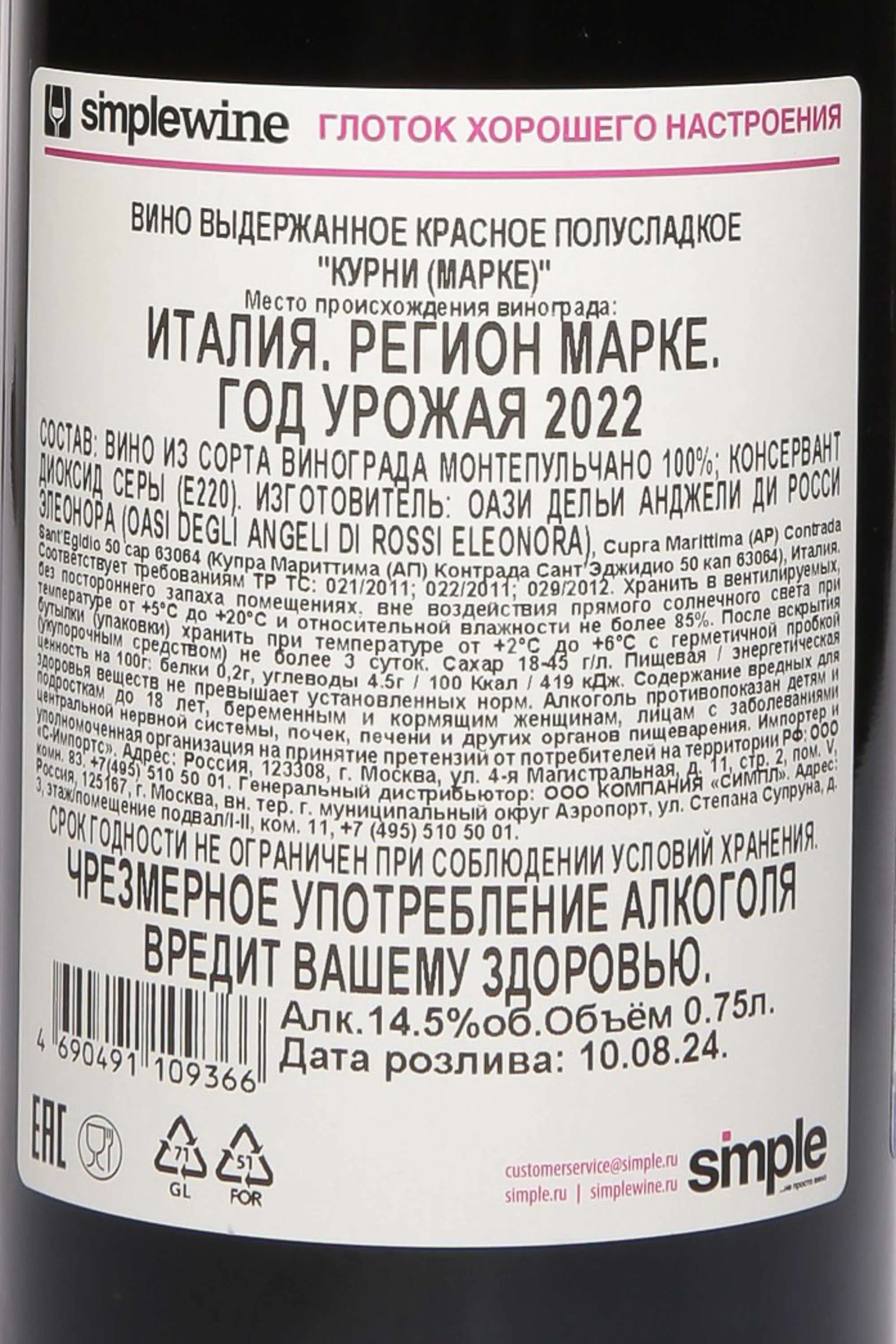 Вино Kurni Oasi Degli Angeli Marche IGT 2022 0.75 л представляет собой изысканный напиток, созданный на винодельне в регионе Марке, вблизи Адриатического побережья. Производитель использовал метод ручного сбора и тщательной селекции ягод, применял продолжительную мацерацию и выдержку в новых барриках из французского дуба. Местные виноградники отличались низкой урожайностью, что обеспечивало концентрированную структуру и насыщенность. Терруар включал глинисто-известняковые почвы и мягкий морской климат, благодаря чему ягоды достигали гармоничного баланса спелости и кислотности. В результате получился редкий образец авторского стиля, соединявший силу, глубину и выразительность.