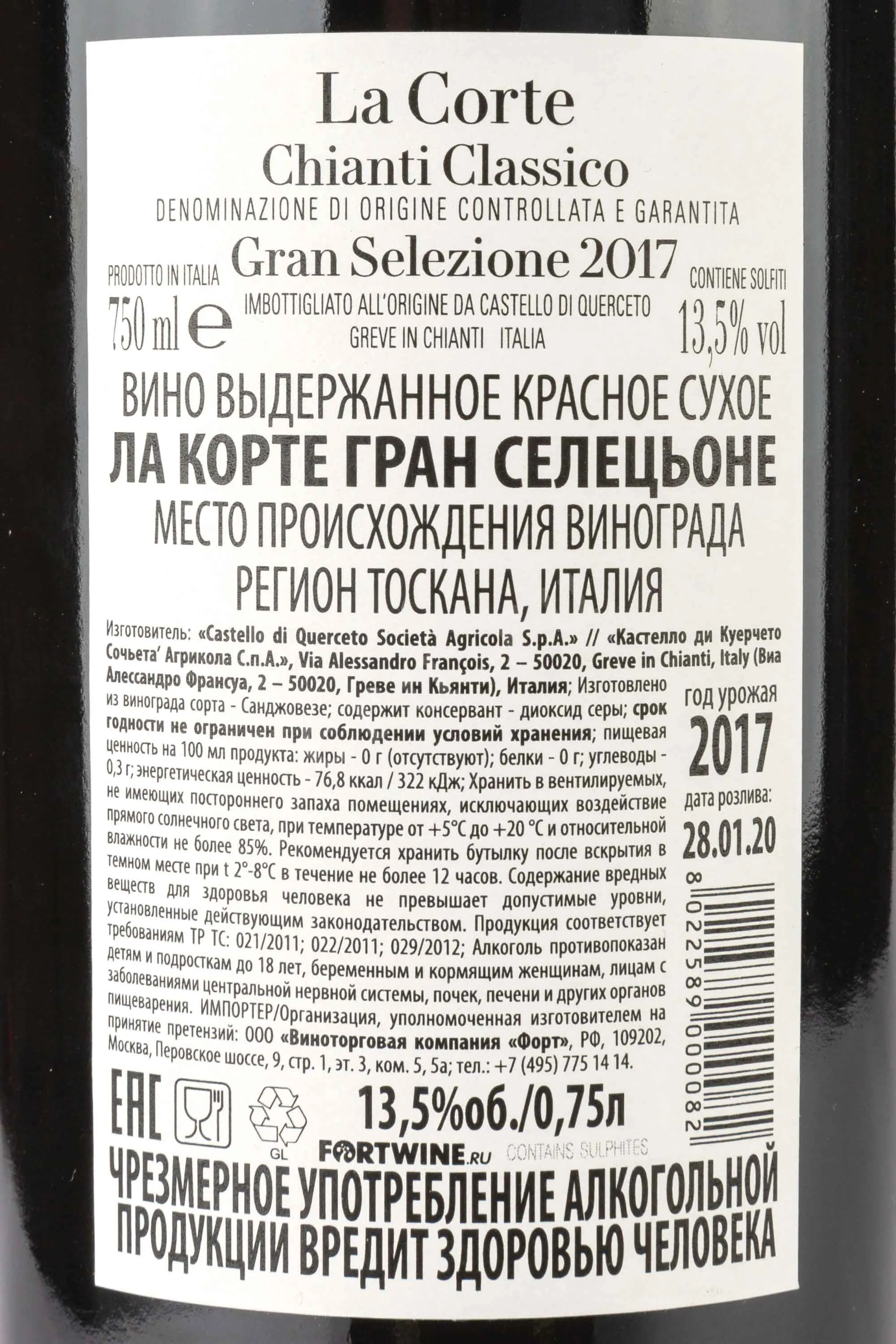 Ла Корте Гран Селецьоне Кьянти Классик Кастело ли Куерчето 2017 0.75