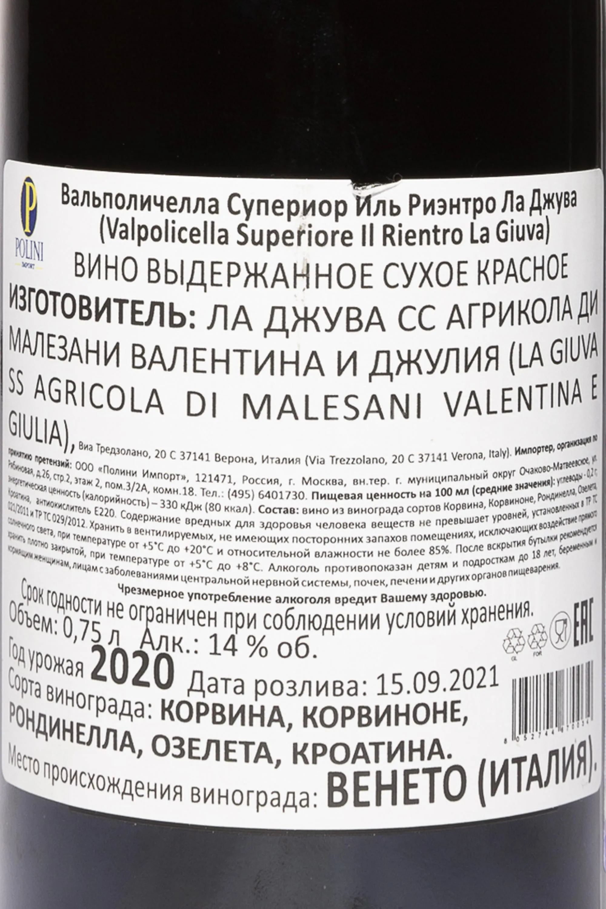 La Giuva Il Rientro Valpolicella Superiore 2020 0.75 л купить - Итальянское вино Ла Джува Иль Риэнтро Вальполичелла Супериор цена в магазине г. Москва, ул. Профсоюзная, д. 16/10 10:00-22:00 Ежедневно +7 (495) 920-20-02 info@cru.ru