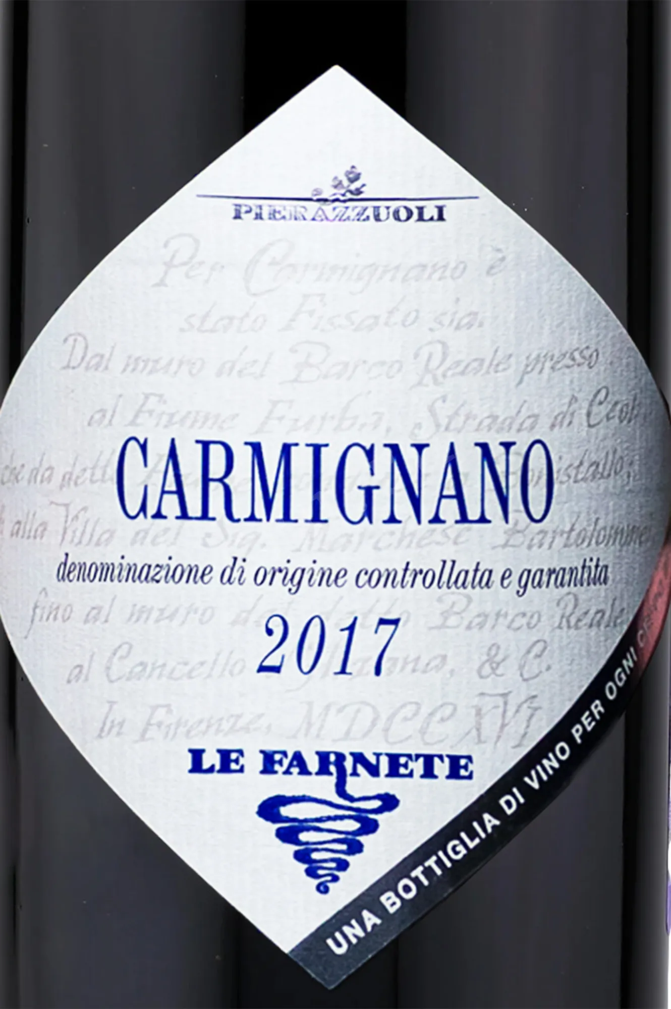 Вино Le Farnete Carmignano 2017 0.75 л произведено из тщательно отобранных ягод, выращенных на террасах с мергелисто-глинистой почвой региона Тоскана. Урожай собирали вручную, после чего ягоды подвергли традиционной винификации с длительной мацерацией на кожице, чтобы максимально передать насыщенность вкуса и аромата. Выдержку осуществляли 12 месяцев в дубовых бочках, благодаря чему напиток приобрёл элегантную структуру и изысканные древесные оттенки.