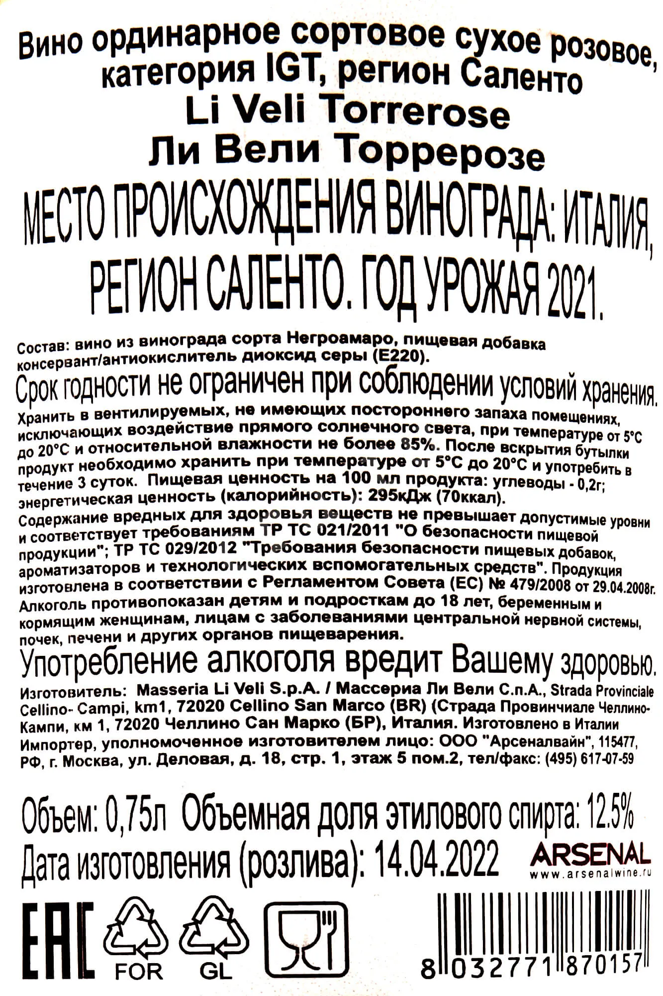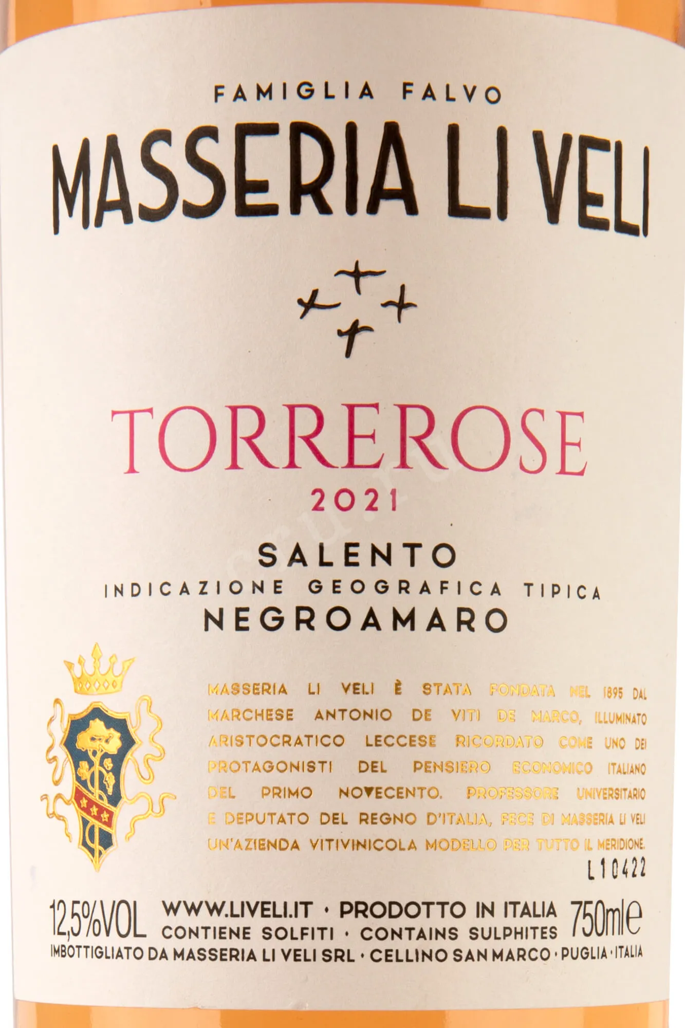 Li Veli Torrerose IGT 2021 0.75 л купить - Итальянское вино Ли Вели Торрерозе ИГТ цена в магазине г. Москва, ул. Профсоюзная, д. 16/10 10:00-22:00 Ежедневно +7 (495) 920-20-02 info@cru.ru