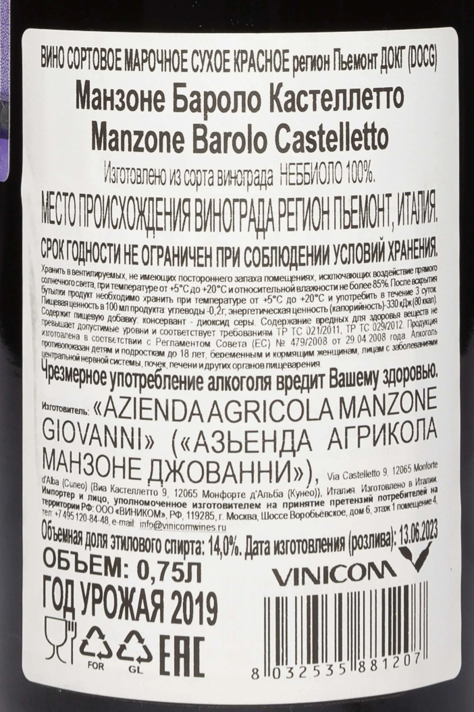 Вино Manzone Barolo Castelletto 2019 0.75 л