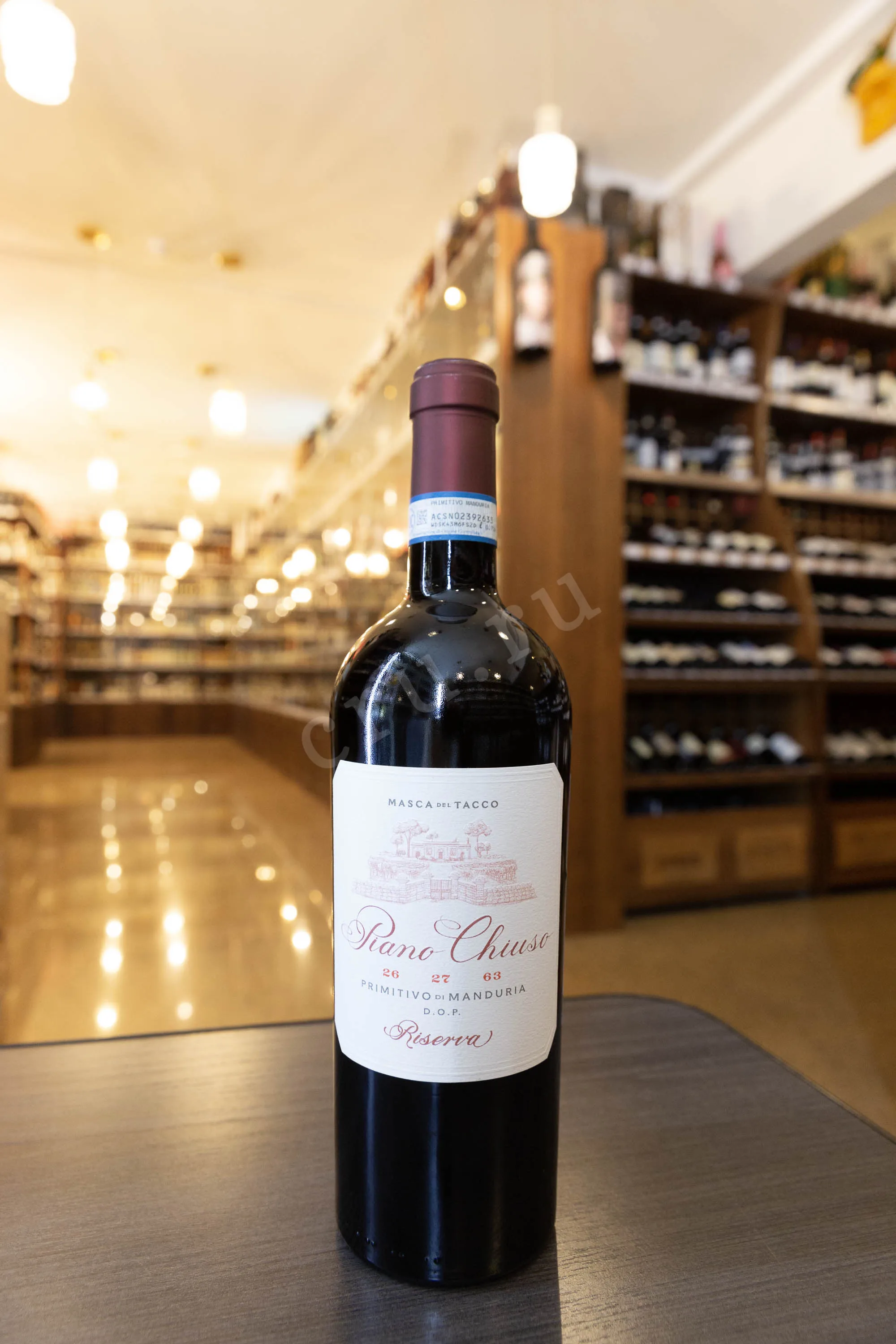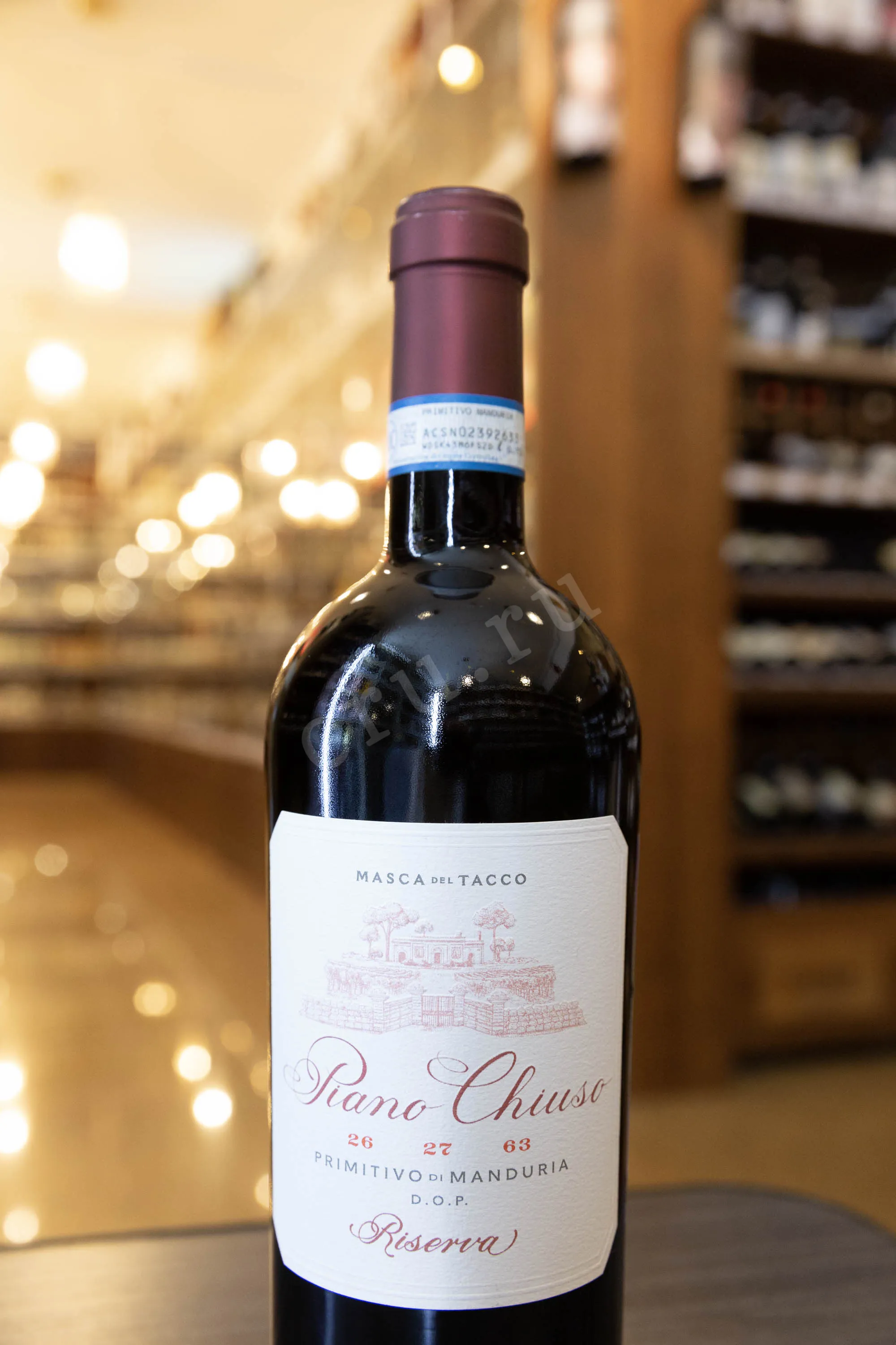 Красное полусухое вино Masca del Tacco Piano Chiuso Riserva Primitivo di Manduria 2021 года 0,75 л создано как отражение отдельного участка в окрестностях Мандурии. Виноградник окружён каменной стеной и возделывается по принципу «закрытого» терруара. Почвы красные, с высоким содержанием органики и известняка. Лозам более 70 лет. Они дают концентрированные ягоды с плотной структурой. 2021 год отличался тёплой и сухой погодой, что позволило собрать здоровый виноград с высокой зрелостью. Ферментация проходила при контролируемой температуре с длительным контактом сусла с кожицей. Это усилило цвет и танинную основу. Выдержка длилась не менее 24 месяцев, из них минимум 9 месяцев — в дубовых бочках. Вино выпускается на рынок только после 31 марта года, следующего за выдержкой. Винтаж удостоился высоких оценок от экспертов (Luca Maroni 99/100 баллов, James Suckling 91/100), был отмечен золотой медалью Mundus Vini, вошёл в Топ-50 Great Red Wines of the World 2024 и получил 5 гроздей Bibenda.