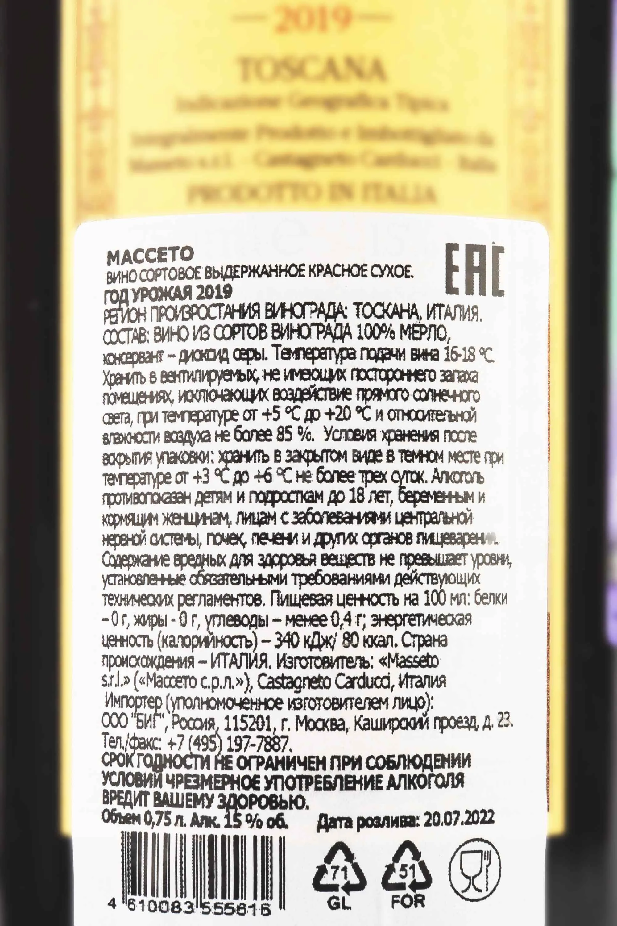 Вино Masseto Ornellaia wooden box 2019 0.75 л