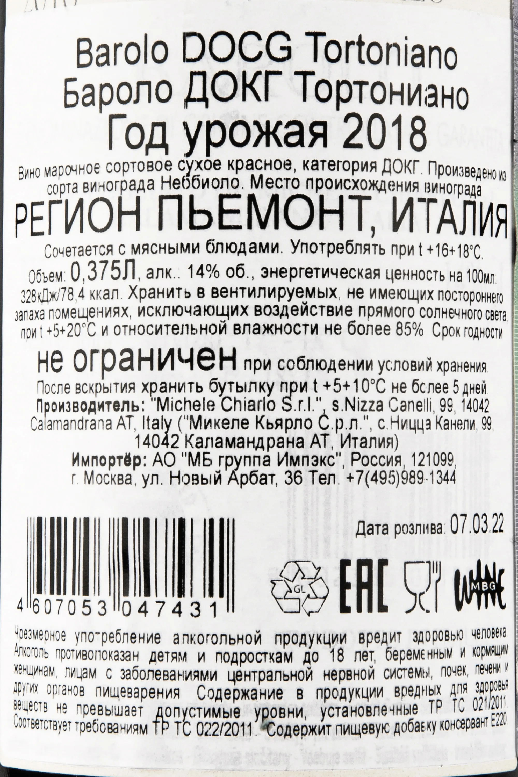 Микеле Кьярло Бароло Тортониано 2018 0.375