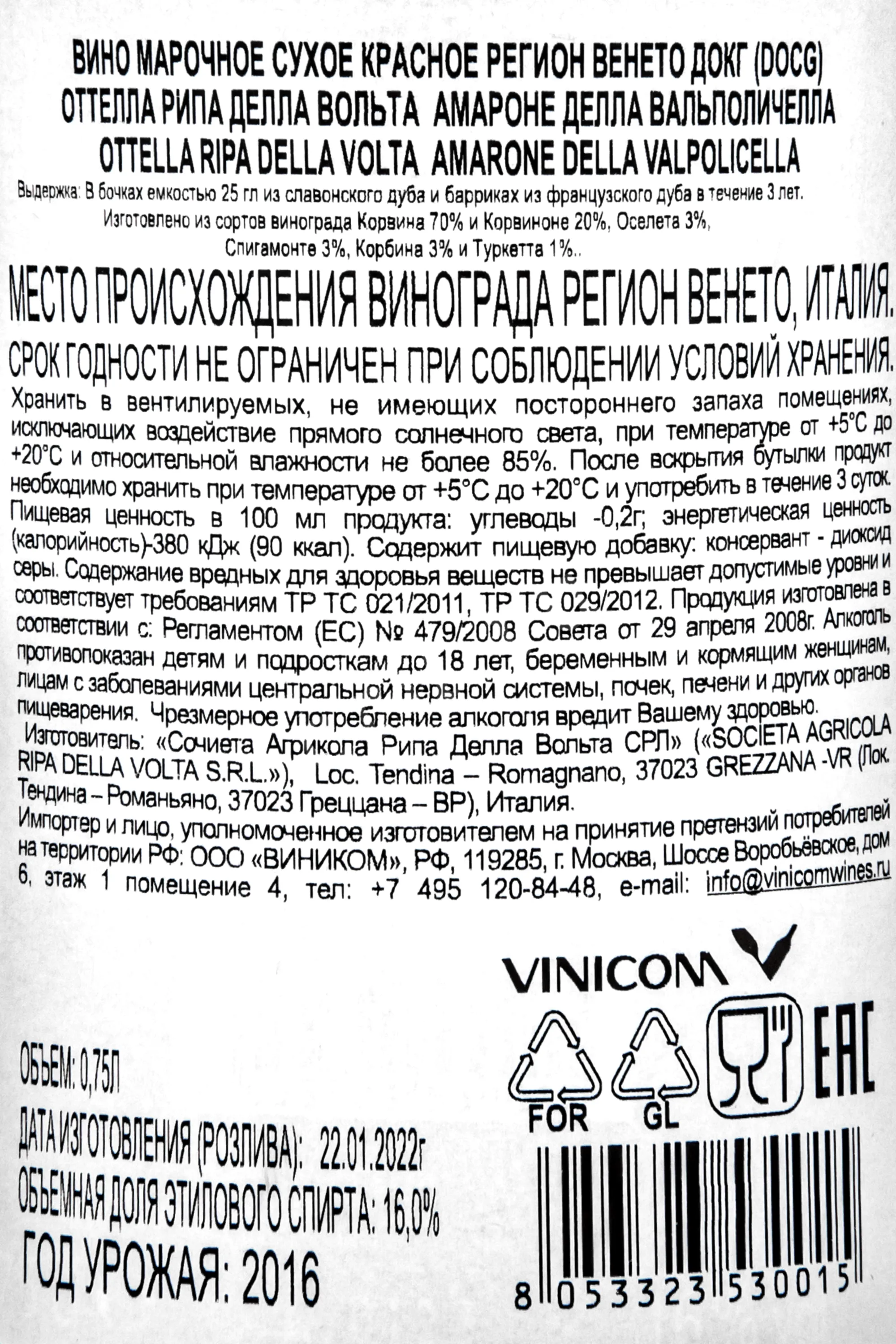 Ottella Ripa della Volta Amarone della Valpolicella 2016 0.75 л купить - Итальянское вино Оттелла Рипа делла Вольта Амароне делла Вальполичелла цена в магазинег. Москва, ул. Профсоюзная, д. 16/1010:00-22:00 Ежедневно+7 (495) 920-20-02info@cru.ru
