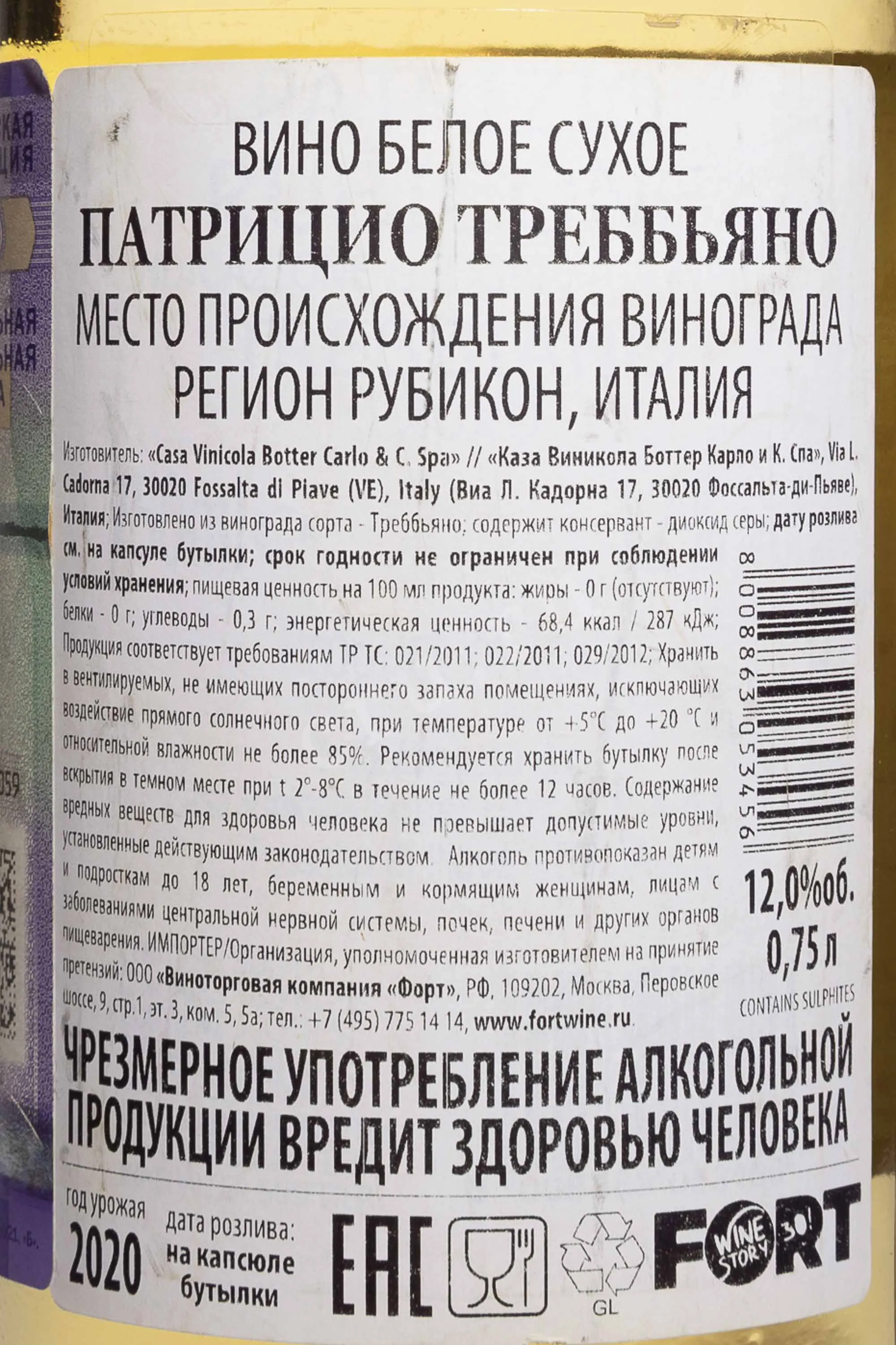 Patrizio Trebbiano 2020 0.75 л купить - Итальянское вино Патрицио Треббьяно цена в магазинег. Москва, ул. Профсоюзная, д. 16/1010:00-22:00 Ежедневно+7 (495) 920-20-02info@cru.ru