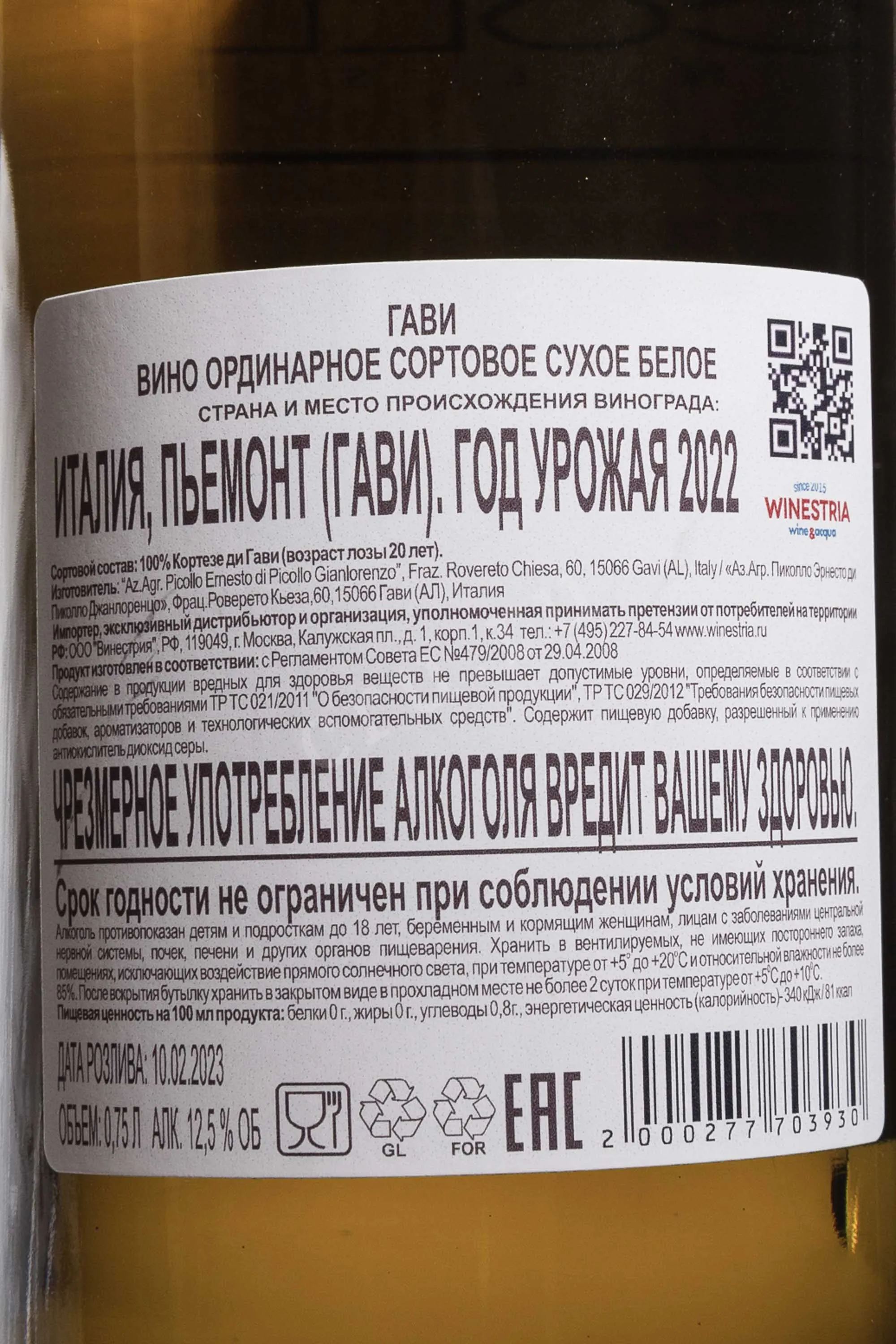 Белое сухое вино Picollo Ernesto Gavi DOCG 2022 года 0,75 л демонстрирует классический, элегантный и сдержанный, стиль апелласьона Гави. Виноград выращен в Пьемонте, на холмах зоны Gavi DOCG. Лозы возрастом около двадцати лет посажены на мергелевых почвах, хорошо удерживающих влагу и тепло. Участки имеют преимущественно южную экспозицию и расположены на высоте около 250 метров над уровнем моря. 2022 год был стабильным в плане погоды и благоприятным для ровного созревания ягод. Сбор урожая проходил в середине сентября. Ферментация велась в стальных чанах при контролируемой температуре около 18 °C. Выдержка не применялась, что позволило сохранить сортовой характер и свежесть. Вино известно своей типичностью и чистым профилем, ценится за стабильное качество.