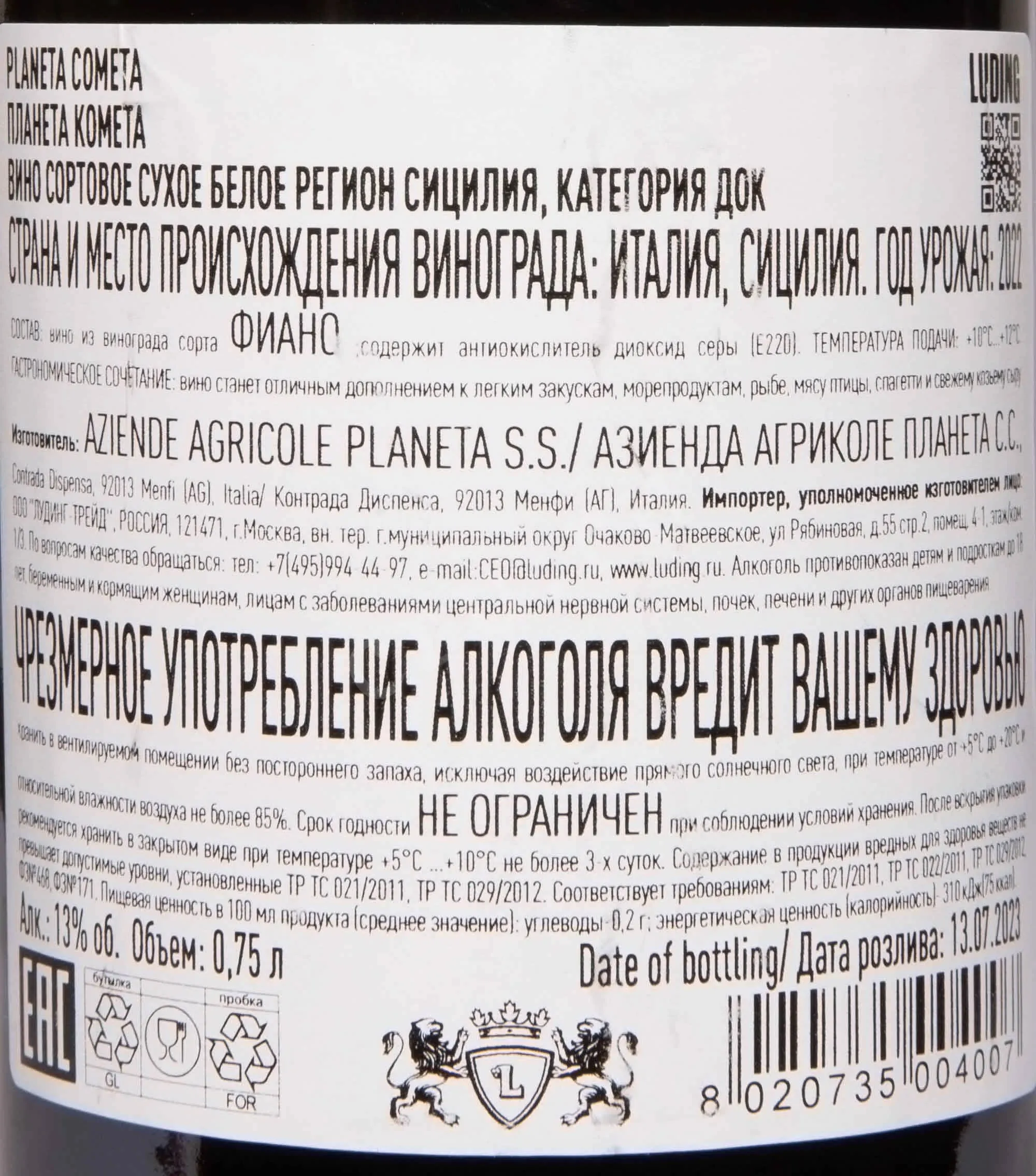 Planeta Cometa Sicilia 2020 0.75 л купить - Итальянское вино Планета Комета Сицилия цена в магазине г. Москва, ул. Профсоюзная, д. 16/10 10:00-22:00 Ежедневно +7 (495) 920-20-02 info@cru.ru