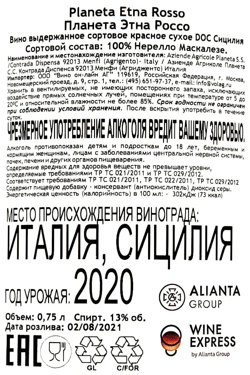 Planeta Etna Rosso 2020 0.75 л купить - Итальянское вино Планета Этна Россо цена в магазине г. Москва, ул. Профсоюзная, д. 16/10 10:00-22:00 Ежедневно +7 (495) 920-20-02 info@cru.ru