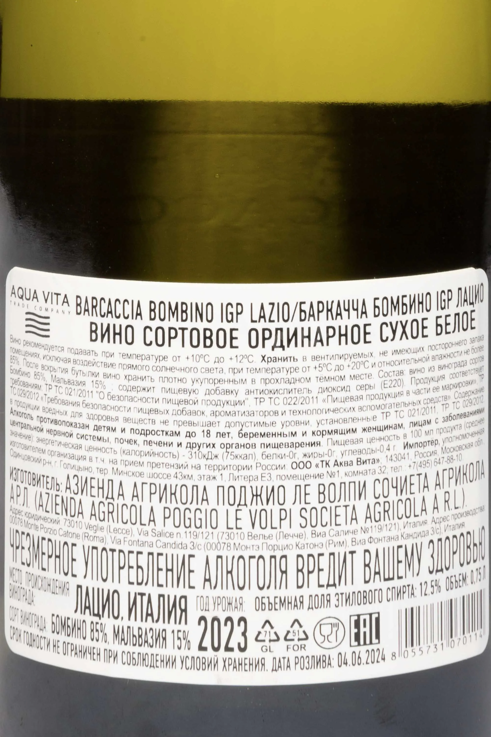 Поджио Ле Волпи Баркачча Бомбино Лацио ИГП 2023 0.75
