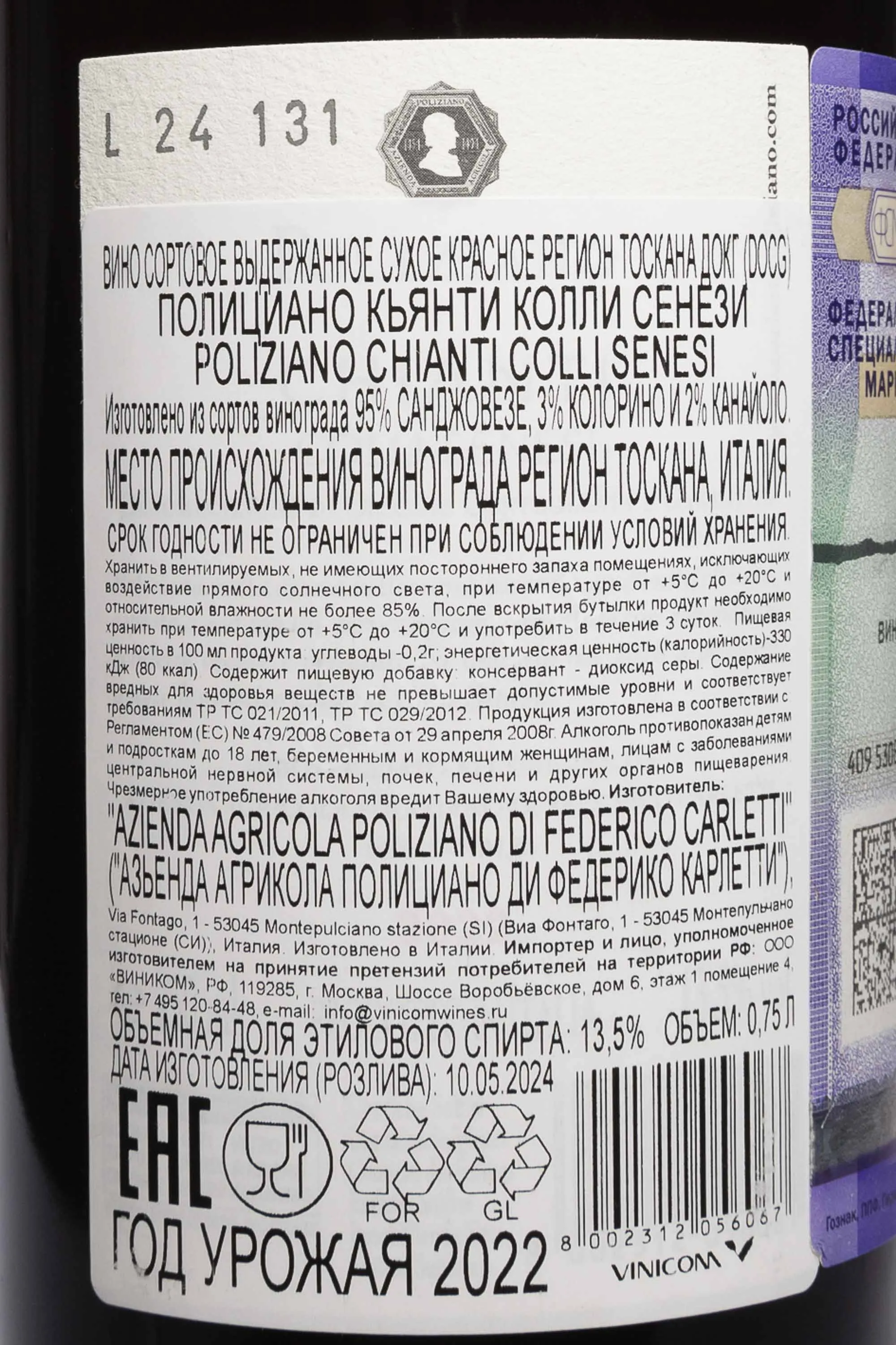 Изготовитель: Azienda Agricola Poliziano di Federico Carletti