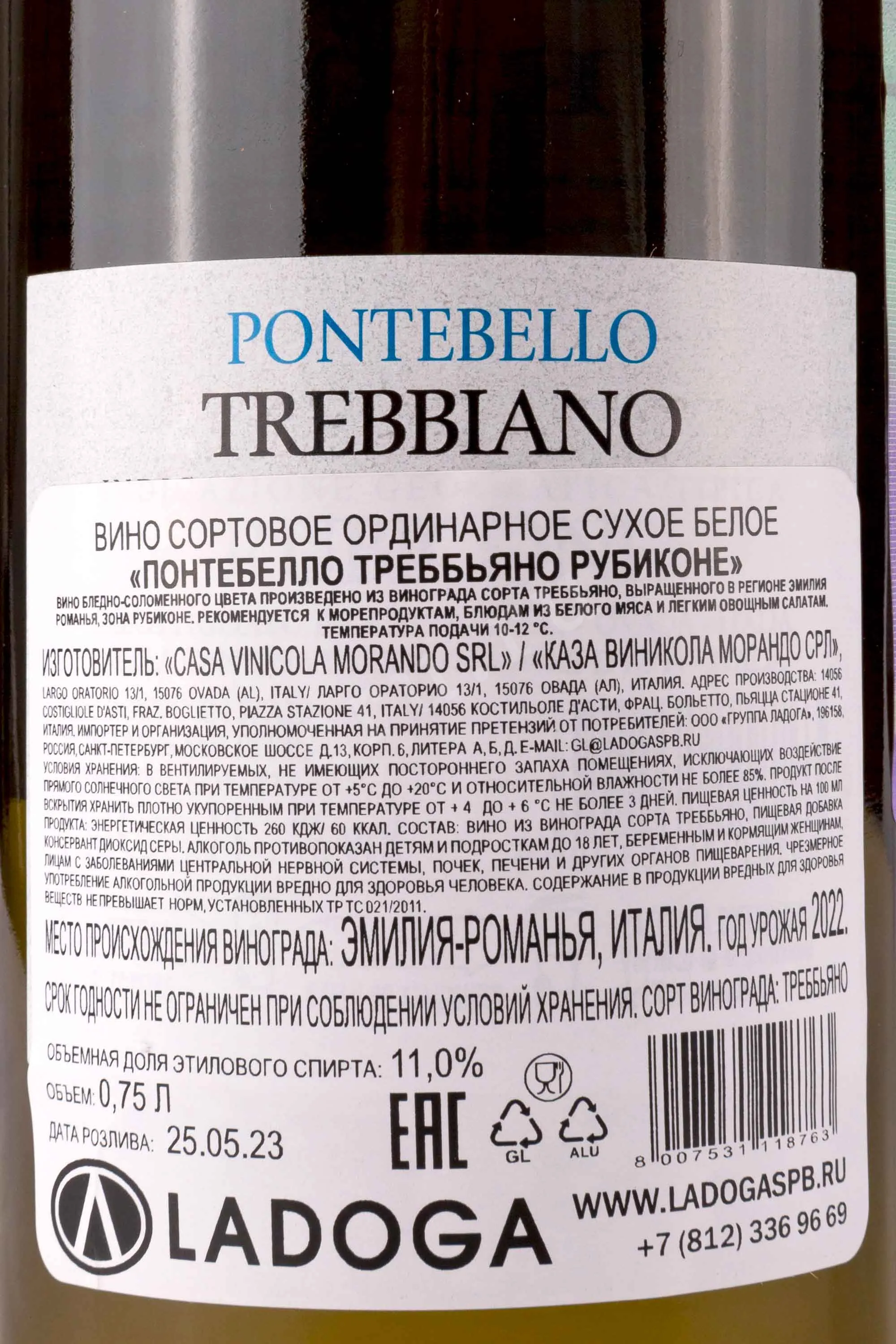 Pontebello Trebbiano Rubicone 2022 0.75 л купить - Итальянское вино Понтебелло Треббьяно Рубиконе цена в магазинег. Москва, ул. Профсоюзная, д. 16/1010:00-22:00 Ежедневно+7 (495) 920-20-02info@cru.ru