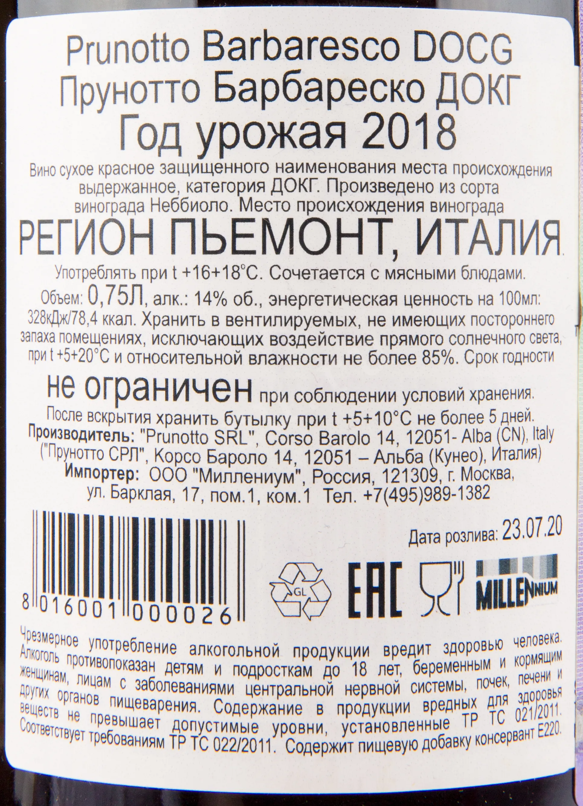 Prunotto Barbaresco DOCG 2019 0.75 л купить - Итальянское вино Прунотто Барбареско ДОКГ цена в магазинег. Москва, ул. Профсоюзная, д. 16/1010:00-22:00 Ежедневно+7 (495) 920-20-02info@cru.ru