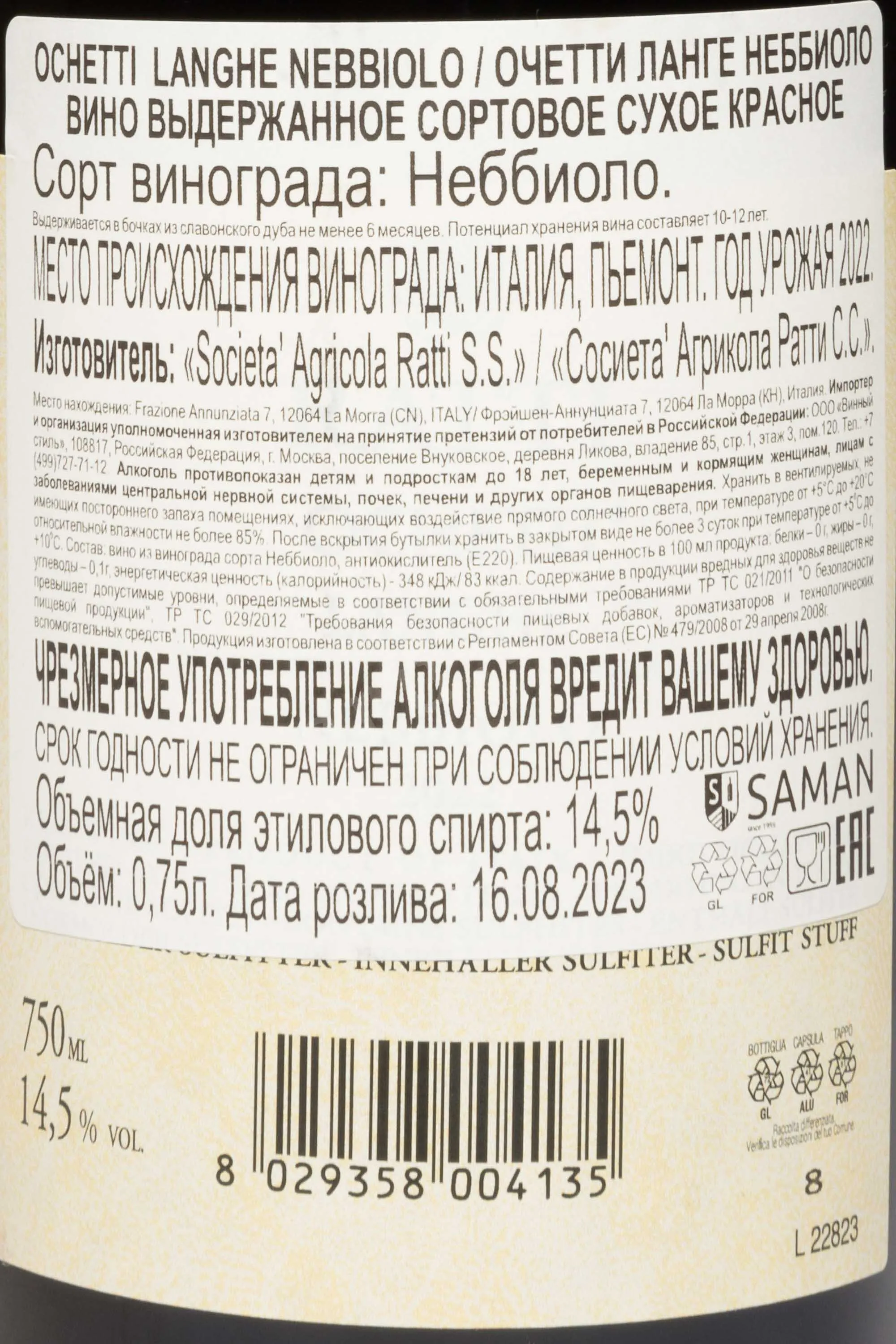 Ренато Ратти Очетти Неббиоло Ланге ДОКГ 2022 0.75