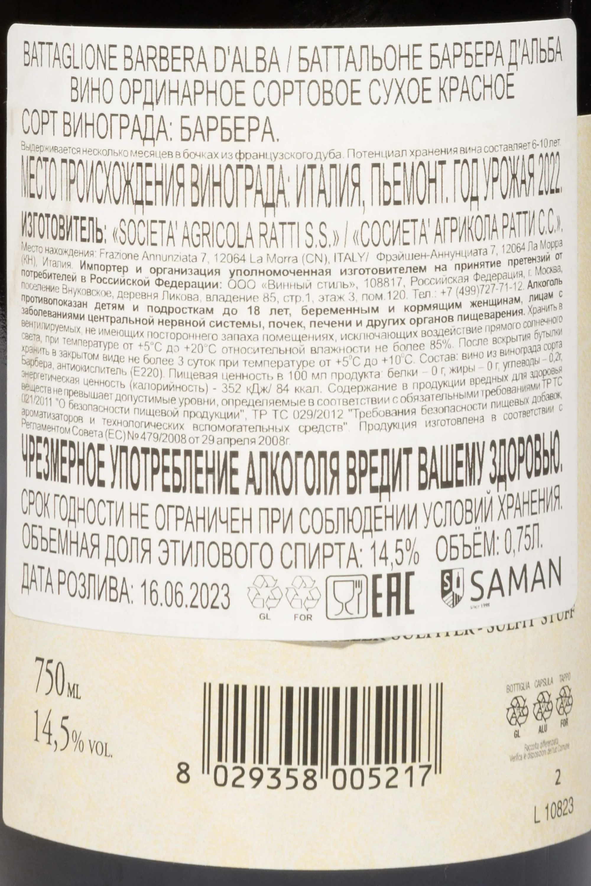 Renato Ratti Battaglione Barbera d'Alba Red Dry DOC 2022 0.75 л купить - Итальянское вино Ренато Ратти Батальоне Барбера д'Альба ДОК цена в магазине г. Москва, ул. Профсоюзная, д. 16/10 10:00-22:00 Ежедневно +7 (495) 920-20-02 info@cru.ru