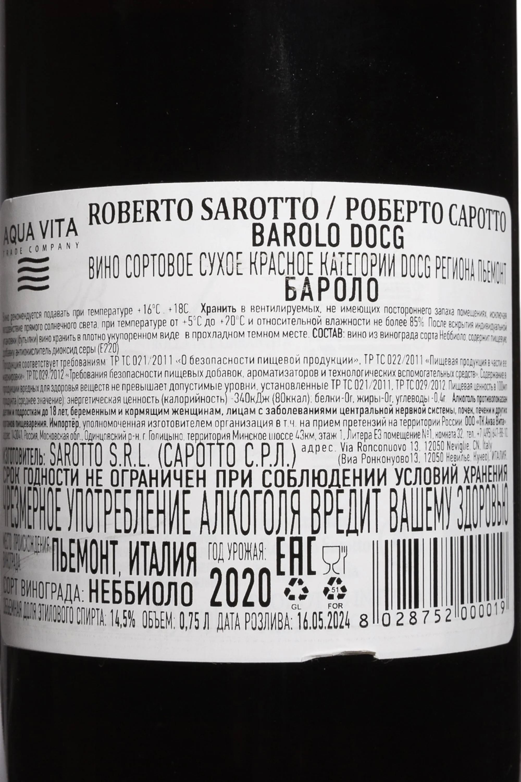 Красное сухое вино Roberto Sarotto Barolo 2020 г. 0,75 л родилось в сердце Пьемонта, где крутые холмы и глинисто-известняковые почвы формируют узнаваемый стиль региона. Для этого выпуска использовали виноград с отобранных участков зоны Бароло. Собранный вручную урожай сортировали и ферментировали с контролем температуры, чтобы сохранить точность ароматики и природные особенности сырья. Длительная выдержка проходила в дубе, где напиток медленно набирал глубину. Минимальное вмешательство в процесс винификации позволило получить образец с ярким терруарным и сортовым характером.