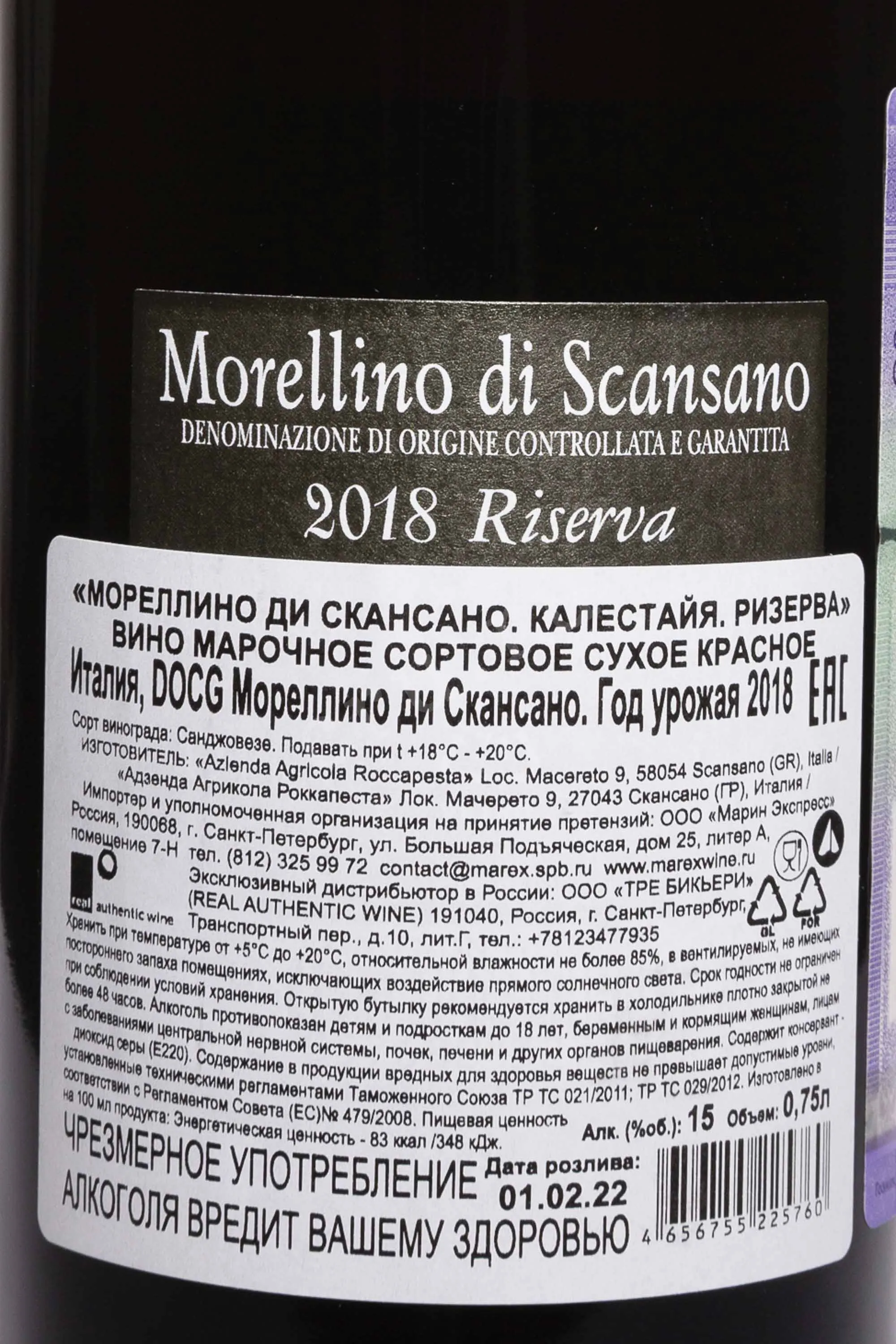 Вино Roccapesta Calestaia Morellino Di Scansano DOCG 2018 0.75 л отражает силу и элегантность тосканского терруара, сформированного на холмах Мареммы. Урожай собран вручную с лоз, произрастающих на каменистых и глинисто-известковых почвах, где морской бриз и суточные перепады температур обеспечили ягодам оптимальную зрелость и концентрацию вкуса. Ферментация проходила в стальных чанах с естественными дрожжами, после чего напиток выдерживался около в бочках из французского дуба и бутылке. Такой подход придал напитку гармонию, глубину и тонкое равновесие между фруктовостью и благородными древесными оттенками. Год отличался умеренным климатом с прохладной весной и сухим летом, что позволило сохранить кислотность и выразительность сорта, формируя насыщенный, но сбалансированный характер.