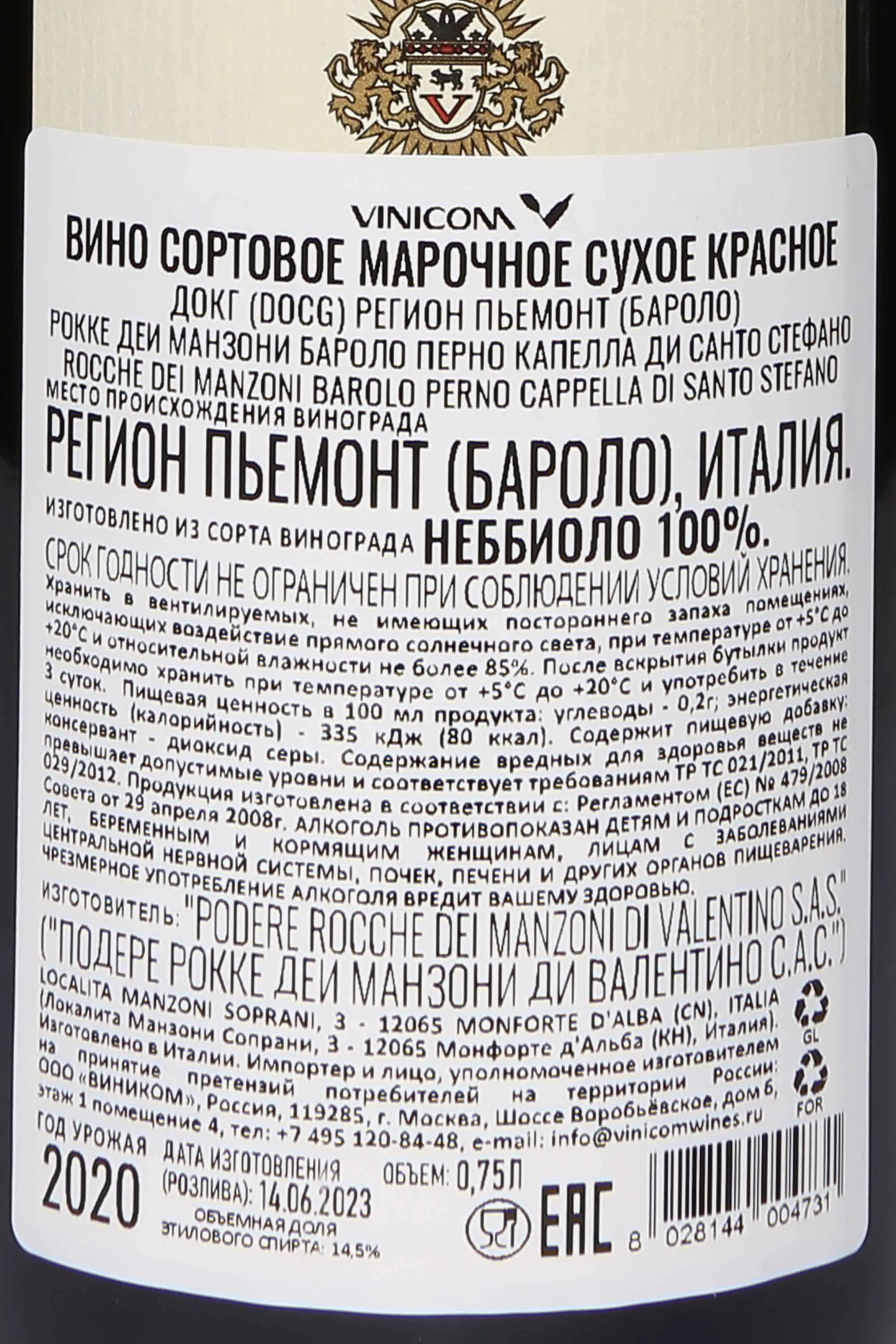 Красное сухое вино Rocche Dei Manzoni Barolo Perno Cappella Di S. Stefano DOCG 2020 года 0,75 л создано в классическом стиле Бароло с выраженной мощью и глубиной. Виноград сорта Неббиоло выращен на исторических виноградниках Пeрнo, расположенных в самом сердце зоны DOCG, на известняково-глинистых почвах, дающих винам силу и долголетие. 2020 год отличался умеренно теплой погодой и равномерным созреванием ягод, что позволило получить виноград с гармоничным балансом сахара и кислотности. Сбор урожая проводился вручную в оптимальный момент зрелости. Ферментация длилась около 2 недель с мацерацией на кожице при контролируемой температуре. Затем вино выдерживалось два года в дубовых бочках и еще 12 месяцев «;;отдыхало» в цементных чанах и бутылках. Винтаж 2020 года удостоился 16,5/20 от критика Джансис Робинсон («;;Изысканное вино»).