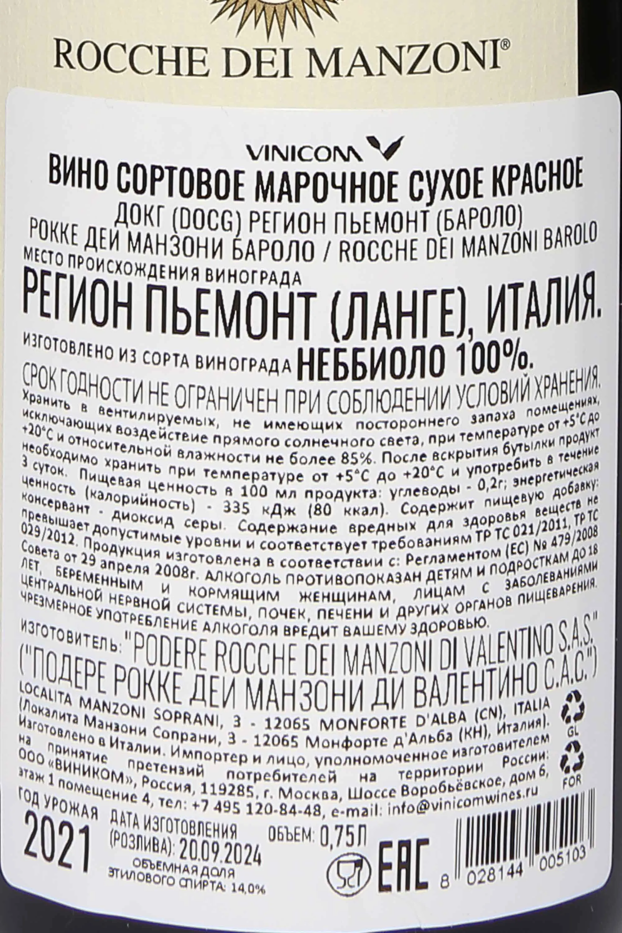 Красное сухое вино Rocche Dei Manzoni Barolo DOCG 2021 года 0,75 л создано в классическом стиле и производится из винограда Неббиоло, выращенного на холмах Бароло с глинисто-известняковыми почвами и хорошей экспозицией. Урожай 2021 года оказался удачным: весна была мягкой, лето теплым и сухим, что обеспечило ягодам оптимальную зрелость и концентрацию вкуса. Сбор винограда проводили вручную в момент полной спелости. Контролируемое брожение длилось около 2 недель в контакте с кожицей. Выдержка в дубовых бочках заняла 2 года, после чего вино «;отдыхало» около года в цементных емкостях и бутылках. Такой подход позволил достичь гармонии структуры и аромата. Бароло от Рокке деи Манзони регулярно получает высокие оценки критиков и упоминается в престижных винных рейтингах, подтверждая репутацию хозяйства как одного из ведущих производителей региона.