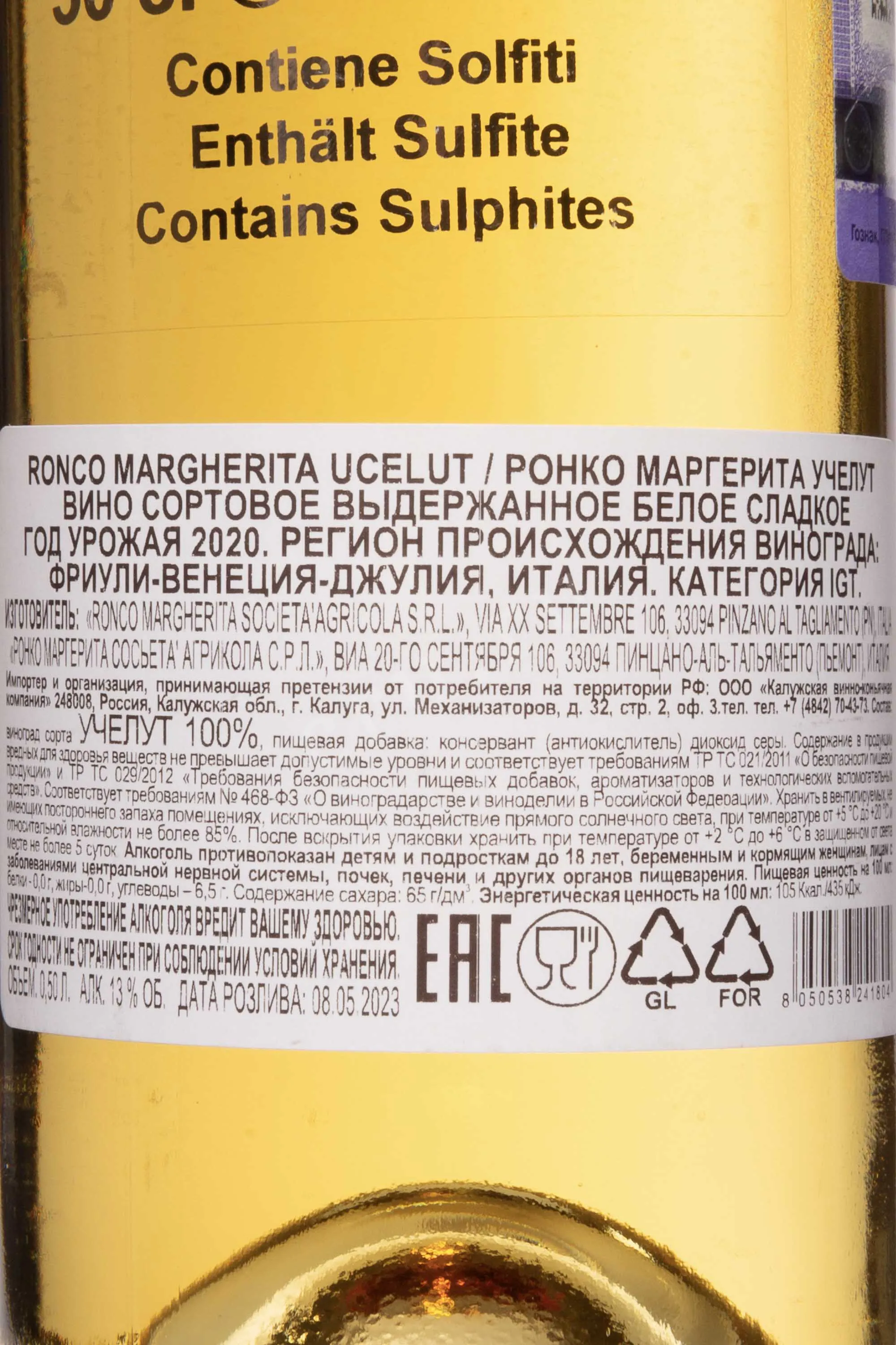 Вино Ronco Margherita Ucelut IGT 2020 0.5 л изготовлено из тщательно отобранных гроздей редкого автохтонного сорта, произрастающего на холмистых террасах региона Фриули, на северо-востоке Италии. Урожай собирали вручную в небольшие корзины с последующей бережной сушкой винограда на специальных деревянных стеллажах в течение нескольких недель, чтобы увеличить концентрацию сахара и ароматики. Производство велось по традиционной технологии: мягкое прессование, медленная ферментация при контролируемой низкой температуре в стальных резервуарах и последующая выдержка на осадке придали напитку неповторимый стиль и характер.