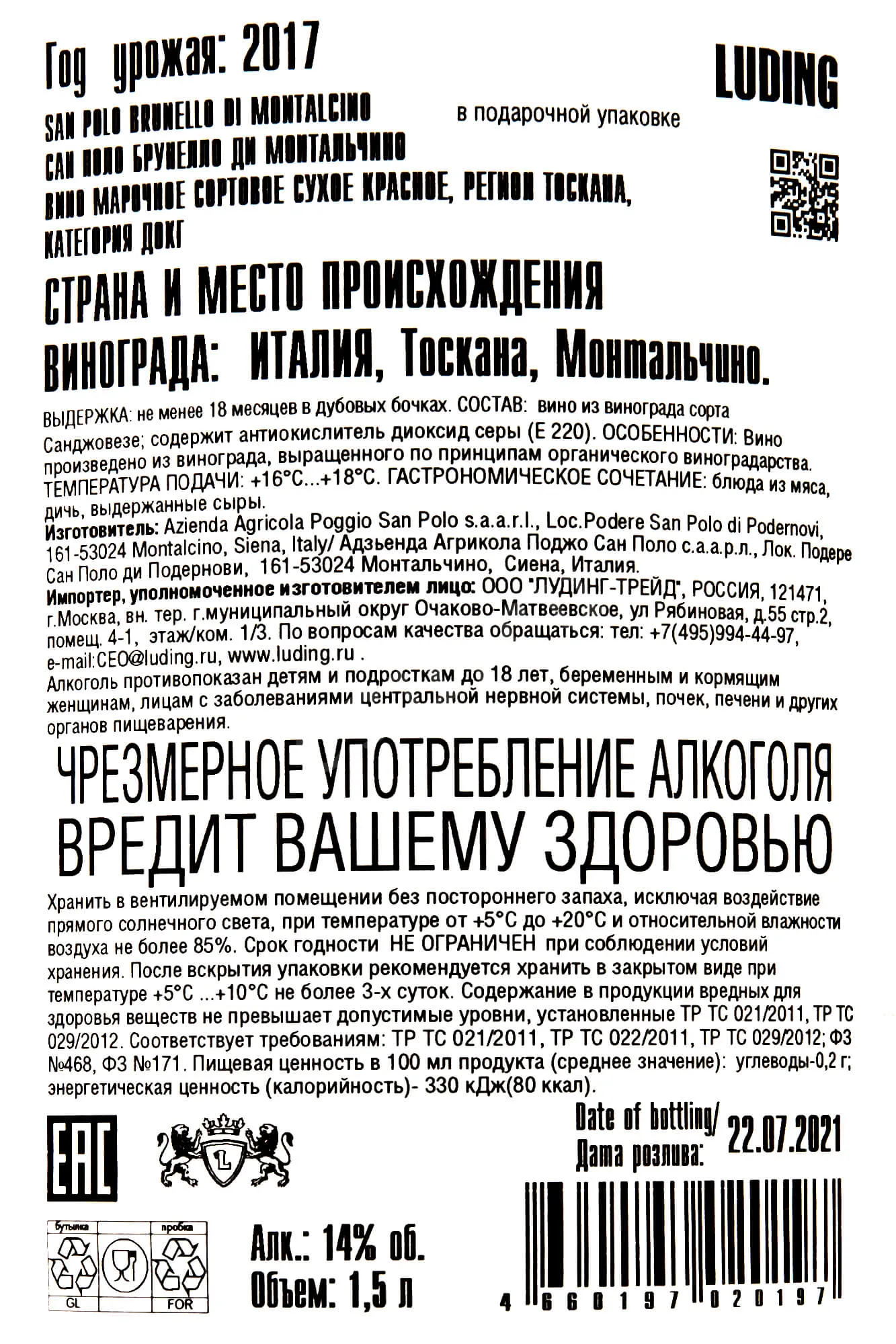 Вино San Polo Brunello di Montalcino DOCG 2017 1.5 л