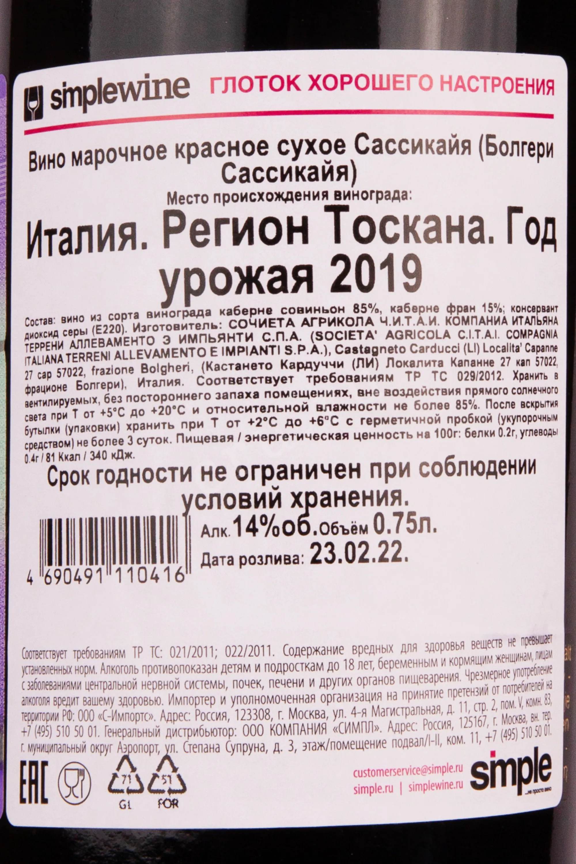 Вино Sassicaia Bolgheri 2019 0,75 л представляет собой один из наиболее значимых образцов супертосканского виноделия, созданный в знаменитом субрегионе Болгери. Это вино — результат амбициозного проекта, положившего начало стилю, известному сегодня во всём мире. Для производства используется виноград, собранный вручную: основой служит каберне совиньон, дополненный сортом каберне фран. После ферментации в стальных резервуарах при строгом контроле температур, вино на протяжении двух лет выдерживается в небольших французских бочках, а затем дополнительно дозревает полгода в бутылке, обретая сложность и элегантность.