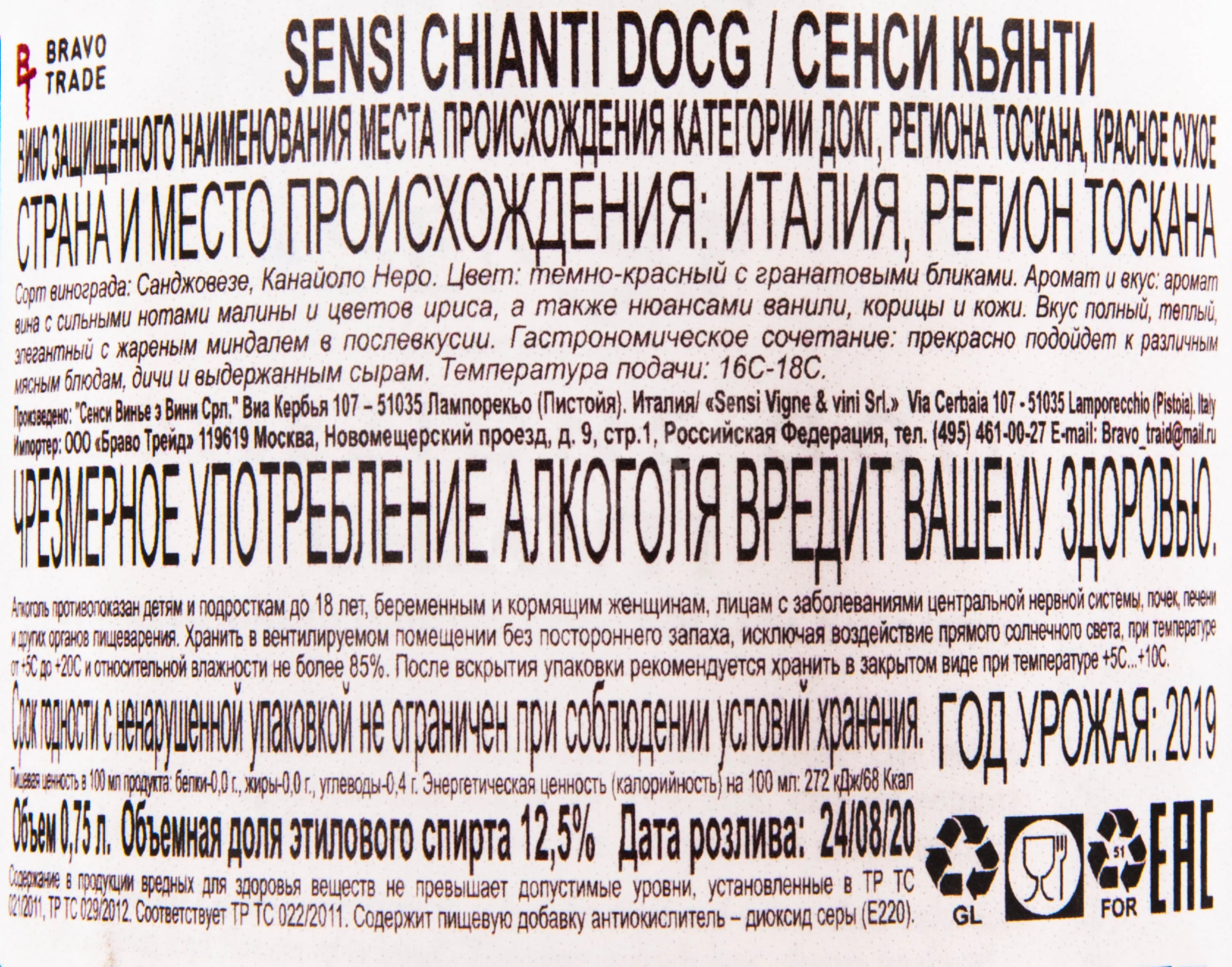 Sensi Chianti 2019 0.75 л купить - Итальянское вино Сенси Кьянти цена в магазине г. Москва, ул. Профсоюзная, д. 16/10 10:00-22:00 Ежедневно +7 (495) 920-20-02 info@cru.ru