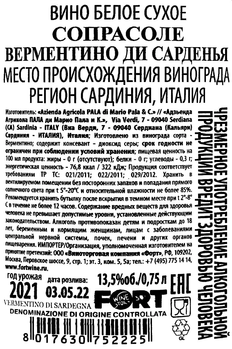 Soprasole Vermentino di Sardegna 2021 0.75 л купить - Итальянское вино Сопрасоле Верментино ди Сарденья цена в магазинег. Москва, ул. Профсоюзная, д. 16/1010:00-22:00 Ежедневно+7 (495) 920-20-02info@cru.ru